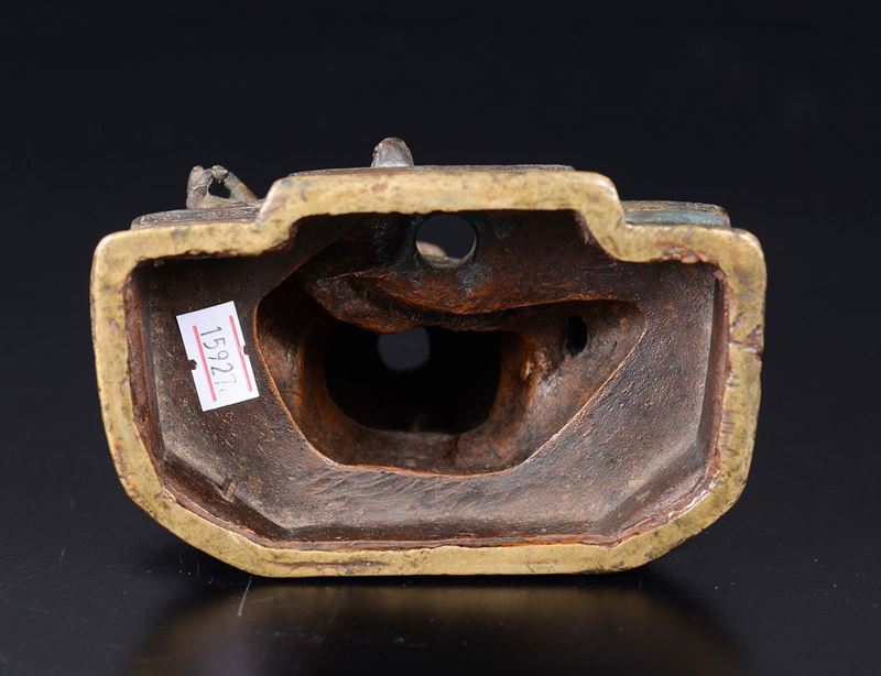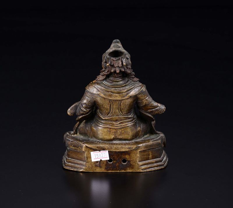 A semi-gilt bronze figure of seated guardian, Tibet, late 17th century