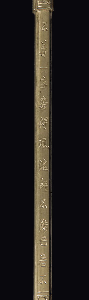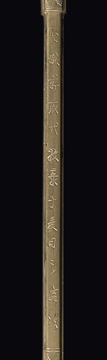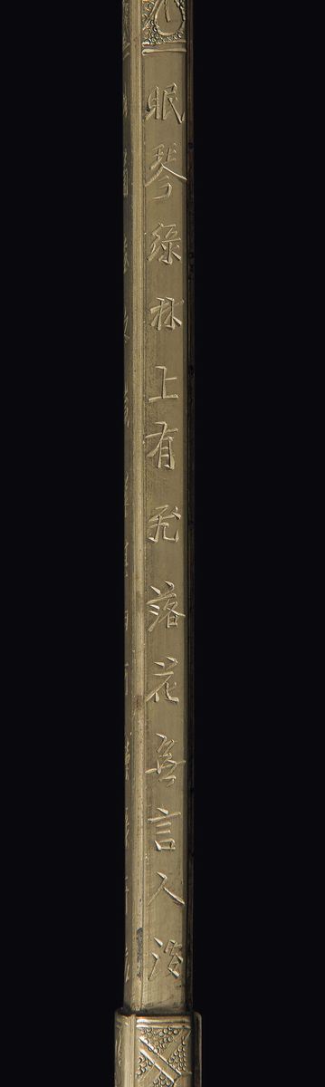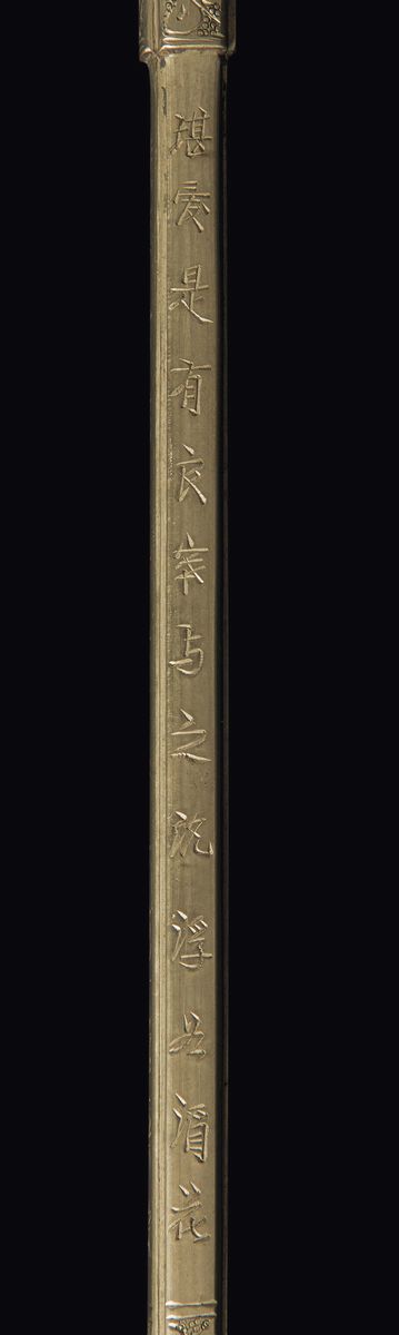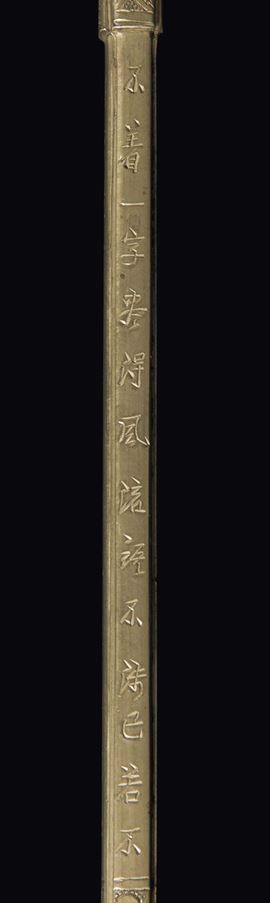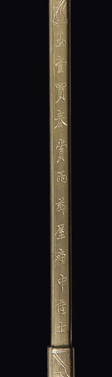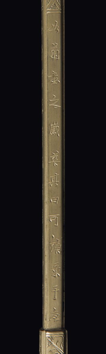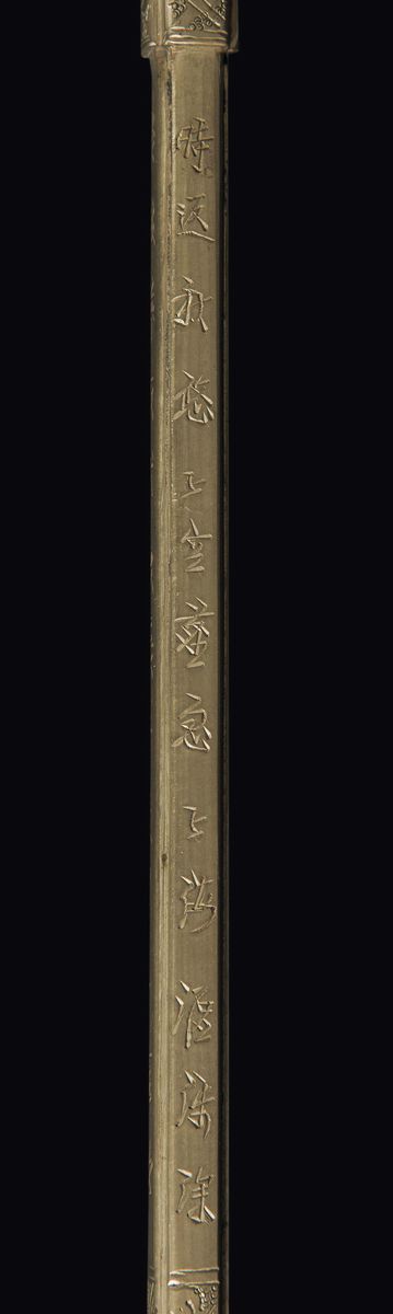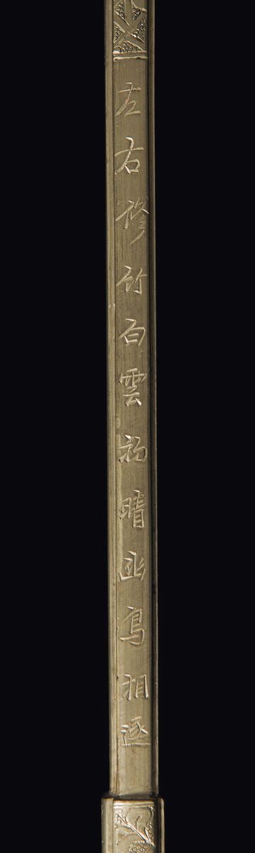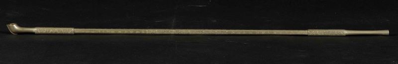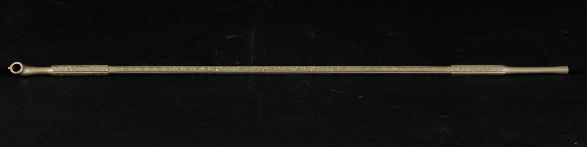 A silver pipe with inscriptions along the body, China, Qing Dynasty, 19th century
