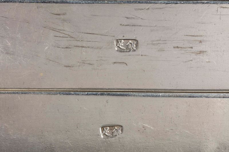 A silver scroll stopper with hunting scenes, China, Qing Dynasty, 19th century