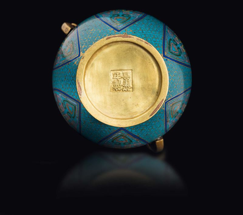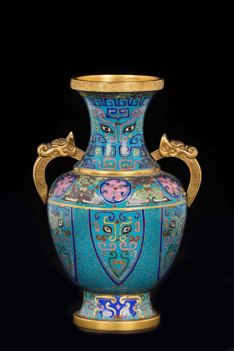 A two handles cloisonné enamel vase with taotie mask, China, Qing Dynasty, 19th century
