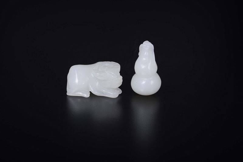 Two carved white jades: a small fruit and a buffalo, China, early 20th century