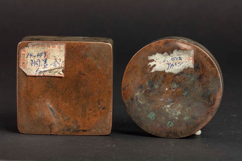 Two different gilt bronze boxes and cover with inscriptions, China, Qing Dynasty, 19th century