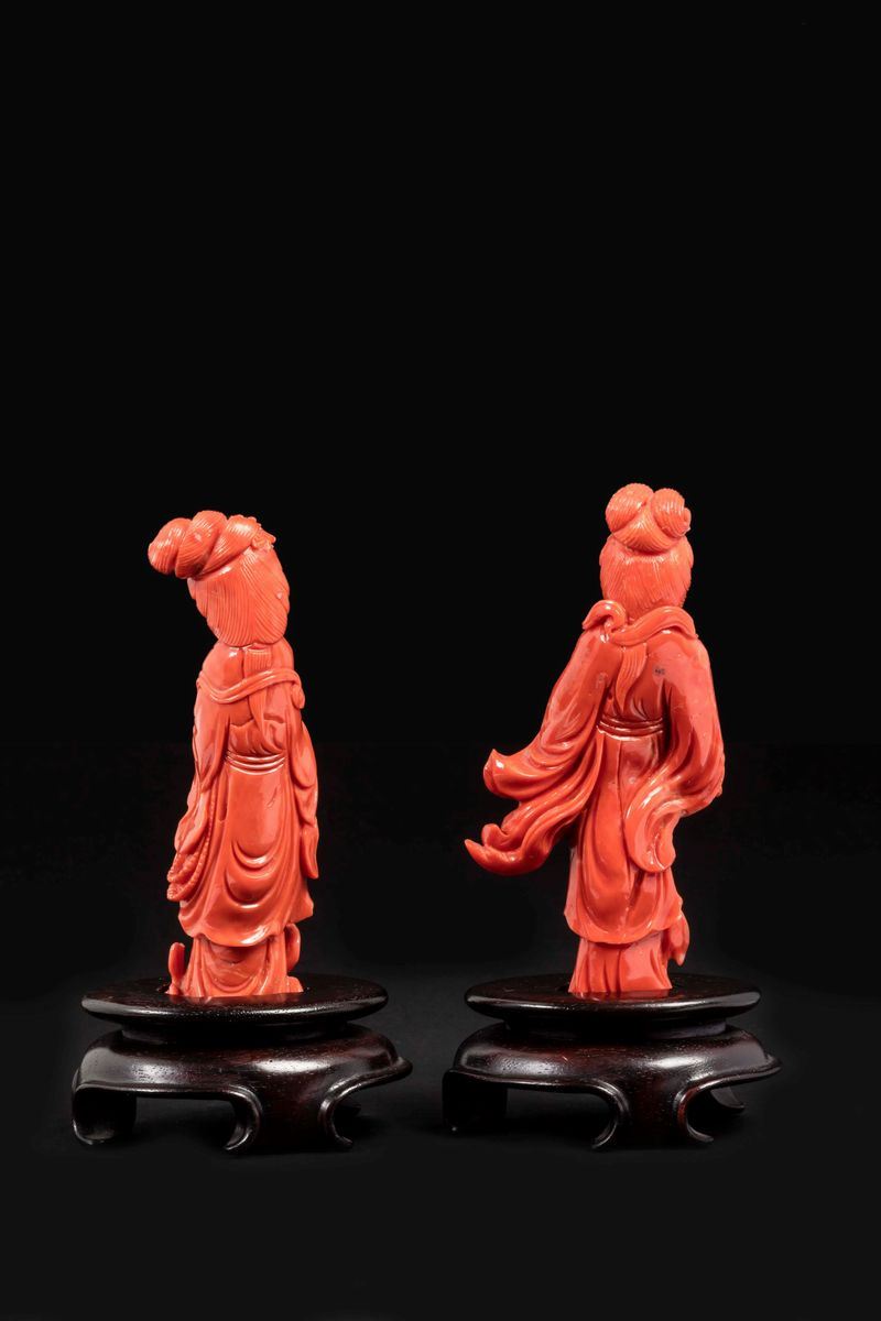 Two small carved coral figures of Guanyin, China, early 20th century