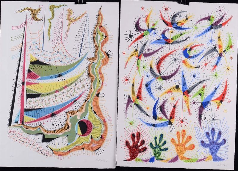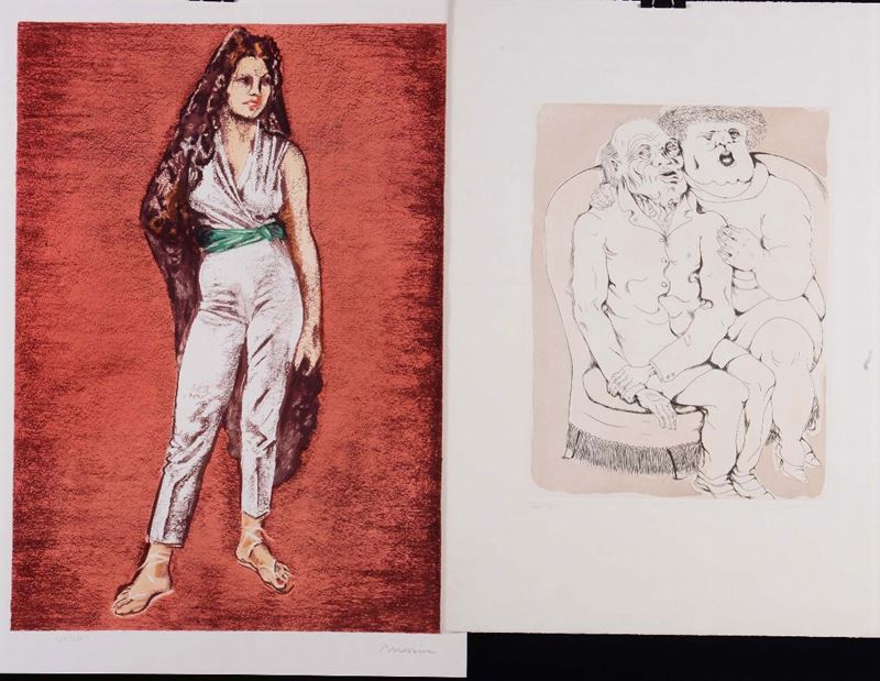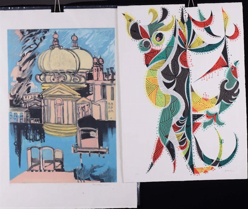 tra cui Rafael Alberti, L’uomo nuovo, lotto di tre litografie, es. 6/100, Ed del Cappello, Verona, 1976 , Franz Borghese, due litografie, es. 16/90, cm 50x70, Remo Brindisi, es. 81/150, cm 80x60, Giuseppe Migneco, es. 120/120, cm 70x50, Francesco Messina, es. 142/150