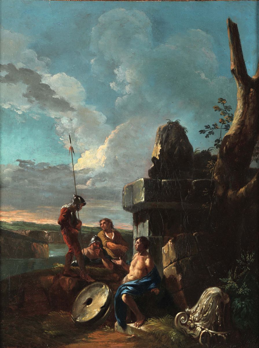 Andrea Locatelli (Roma 1695 - 1741) Paesaggio con figure Paesaggio fluviale con figure