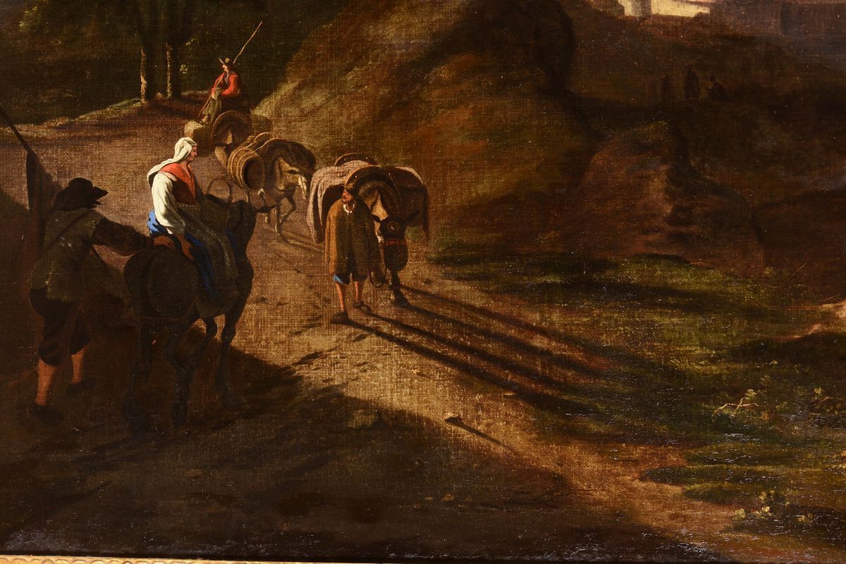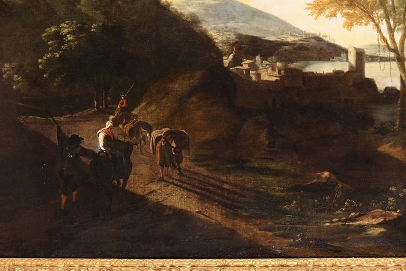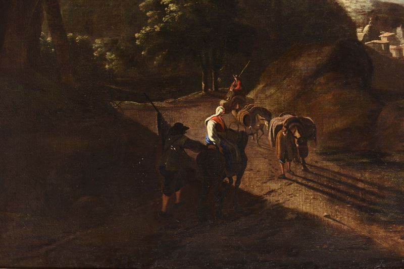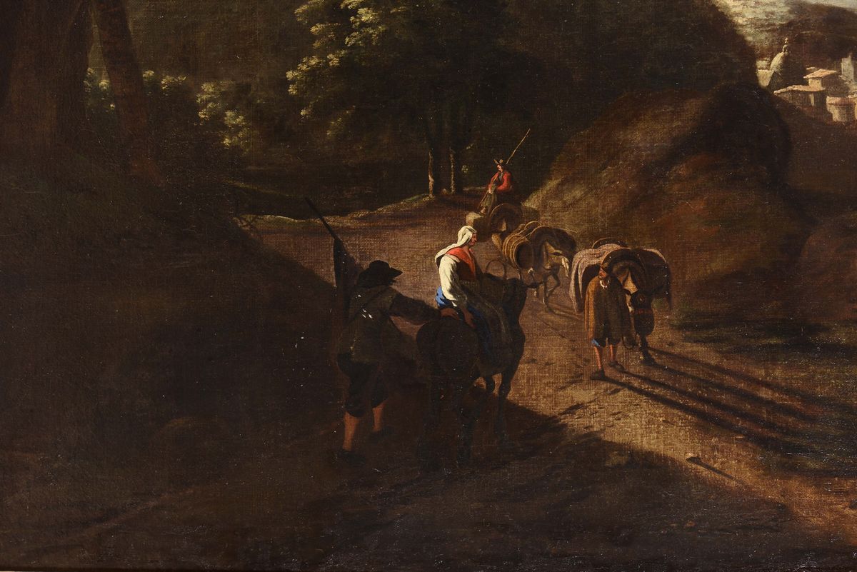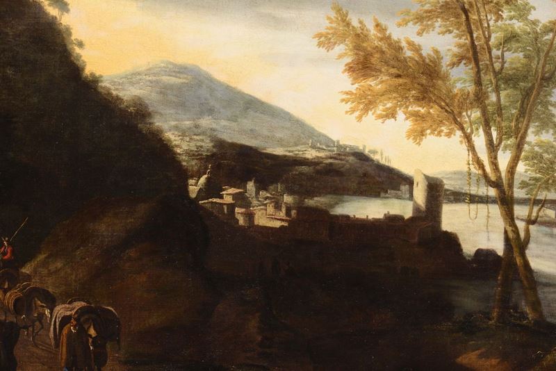 Flemish painter active in Italy during the 17th century Paesaggio con viandanti lungo un fiume