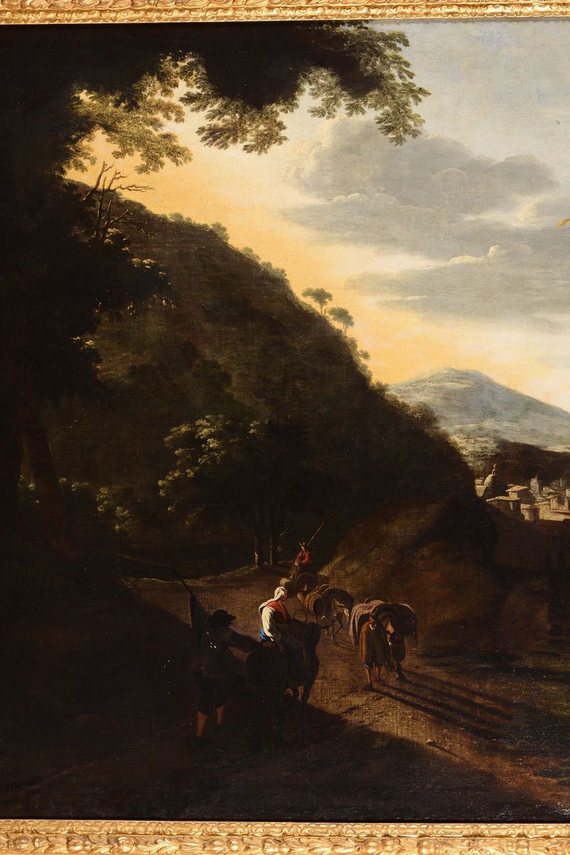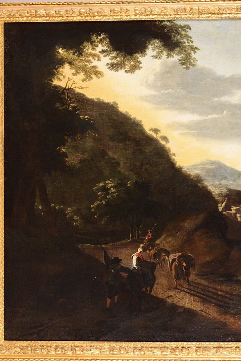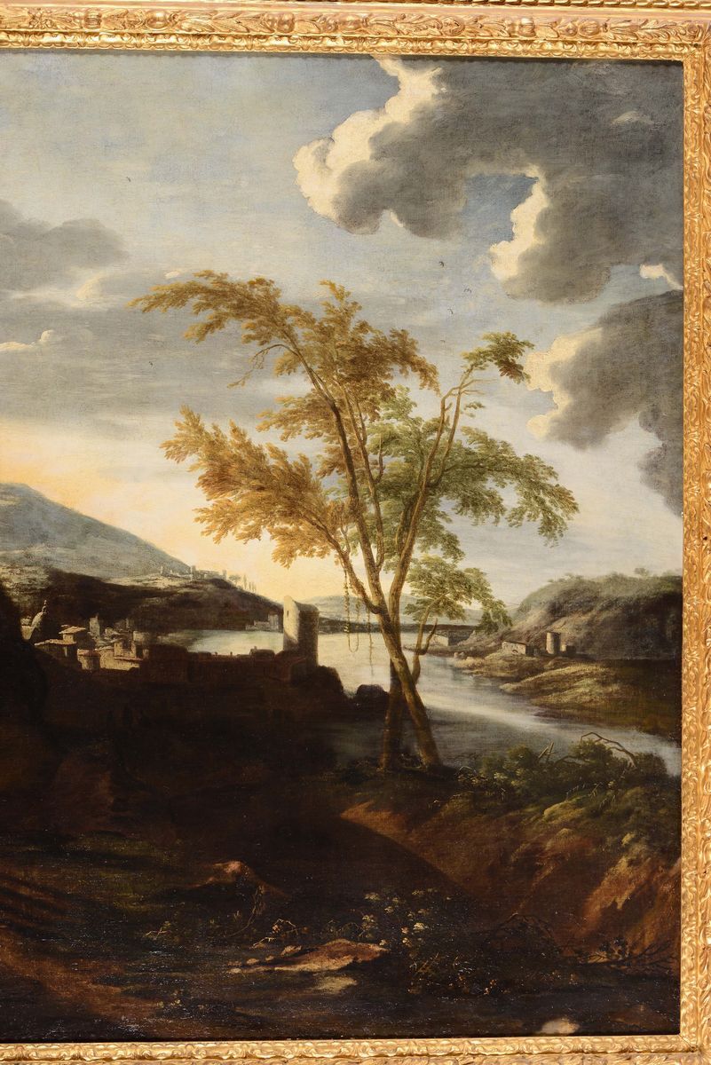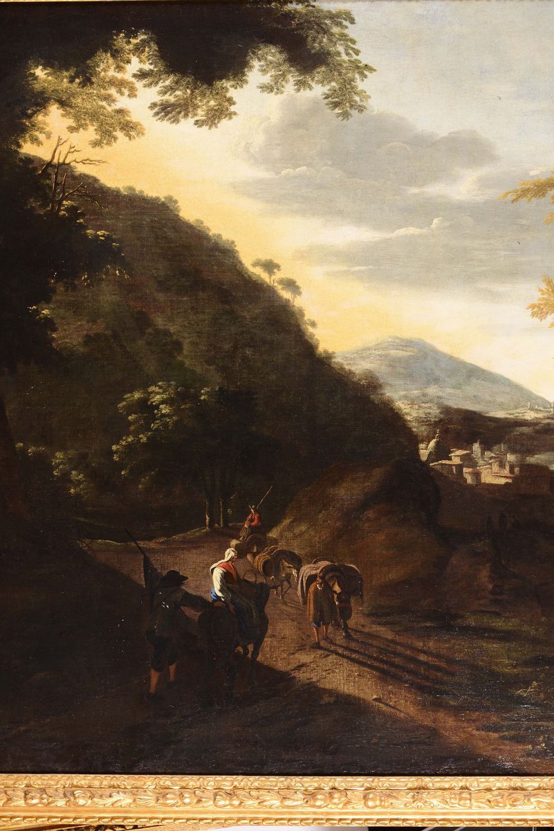 Flemish painter active in Italy during the 17th century Paesaggio con viandanti lungo un fiume