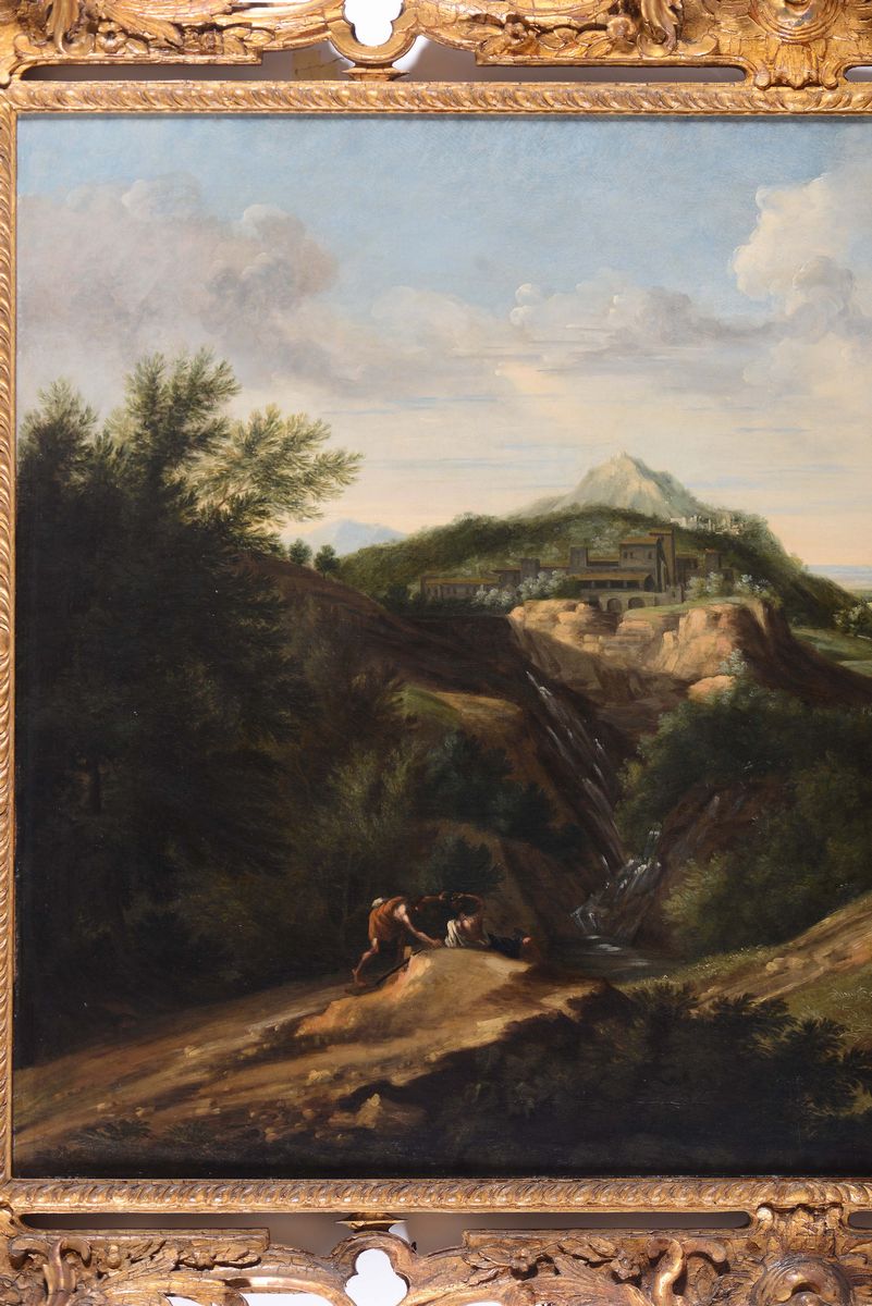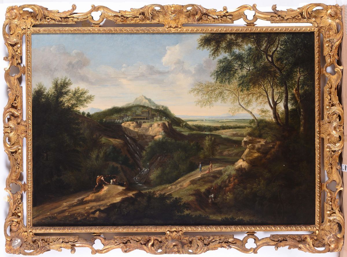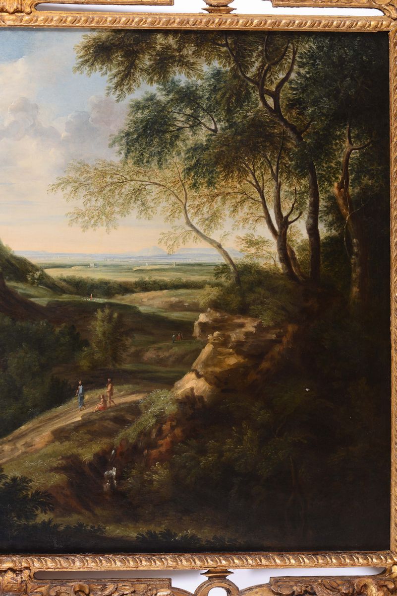 Gaspard Dughet (Roma 1615-1675) Paesaggio con figure a riposo e monastero all’orizzonte