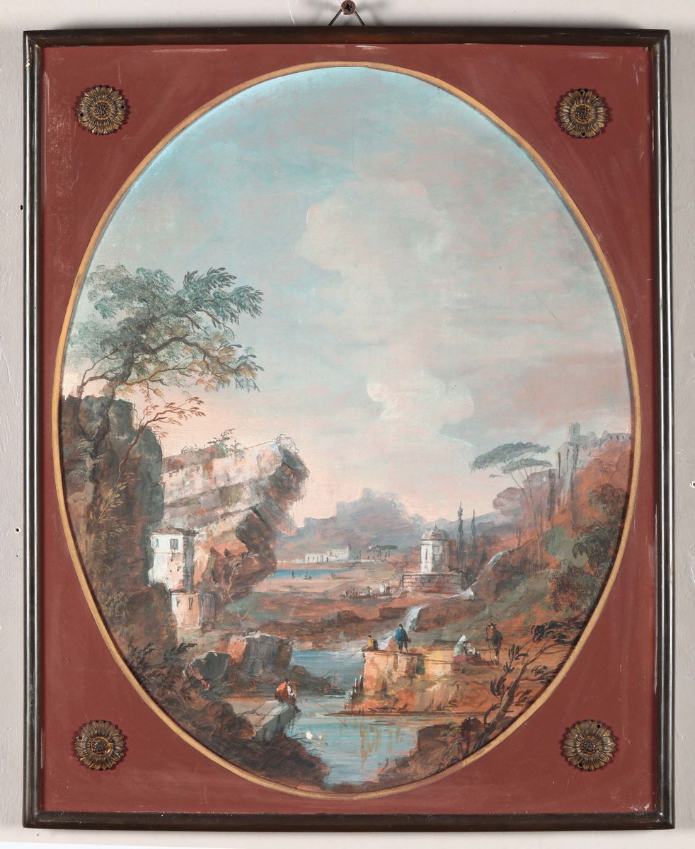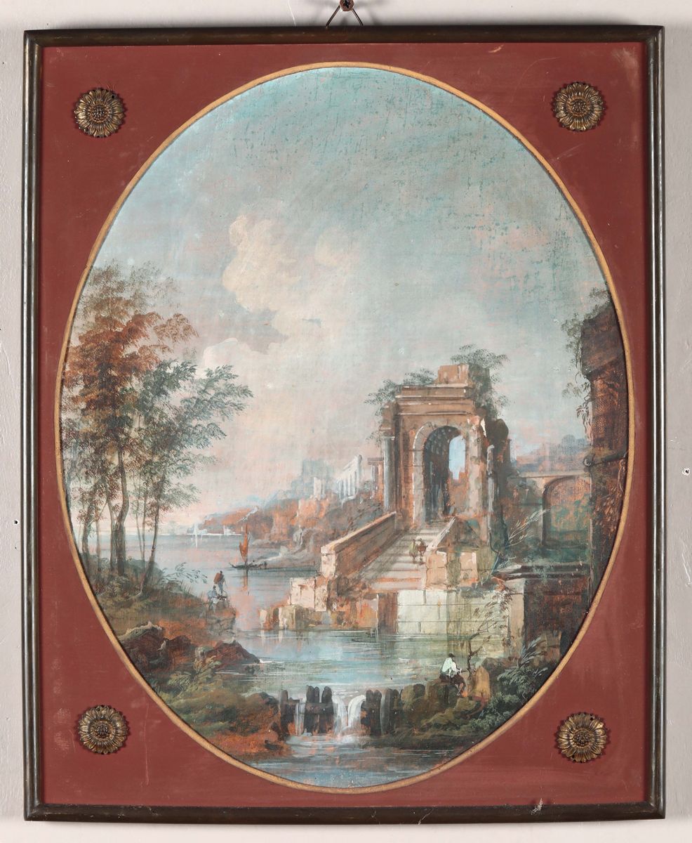 Scuola veneta del XVIII secolo Paesaggi fluviali con rovine