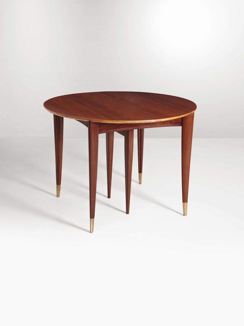 Tavolo estensibile in legno con puntali in ottone. Timbro originale. Prod. Singer & Sons, USA, 1950 ca. cm 102x74; Esteso: cm 266x74