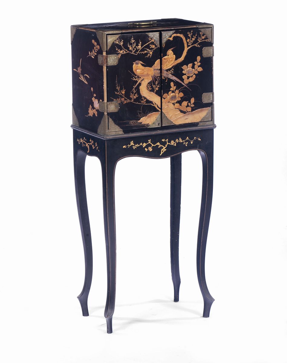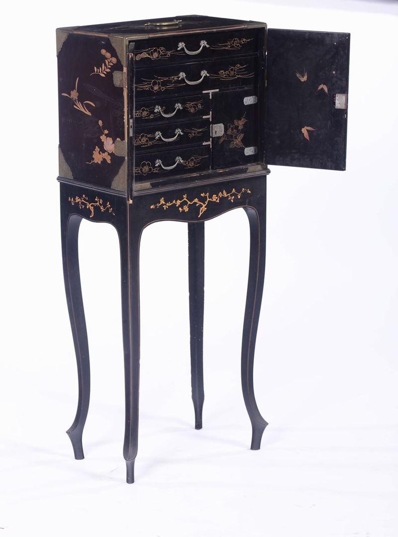 A lacquered wood cabinet and lift, Japan, 19th century