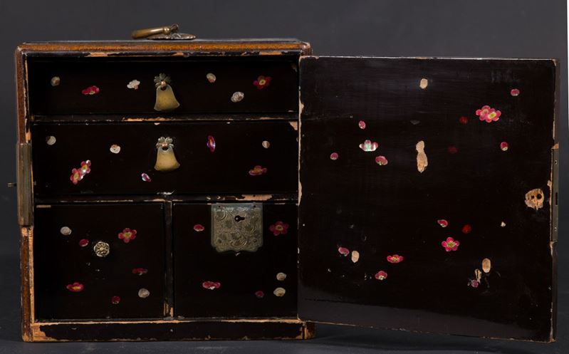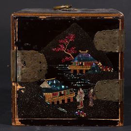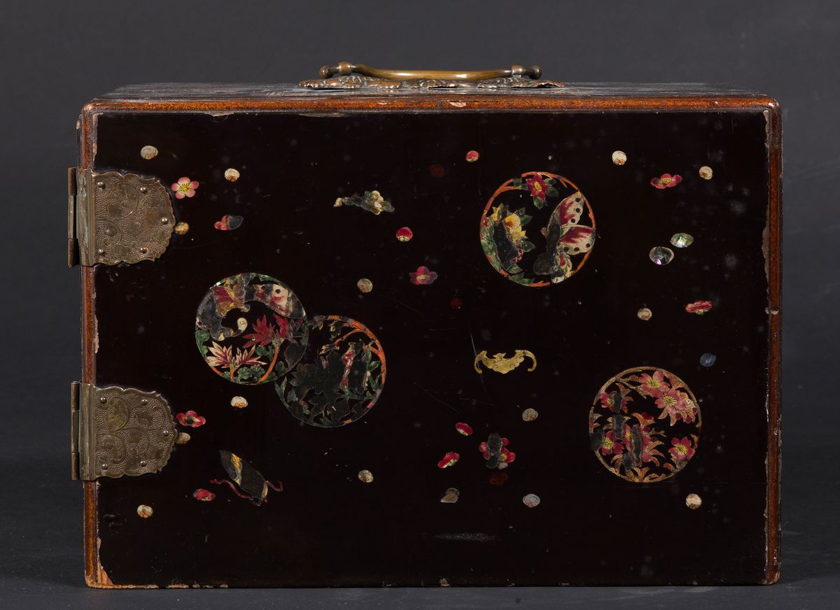 A lacquered wood jewel box with naturalistic decoration, Japan, 20th century
