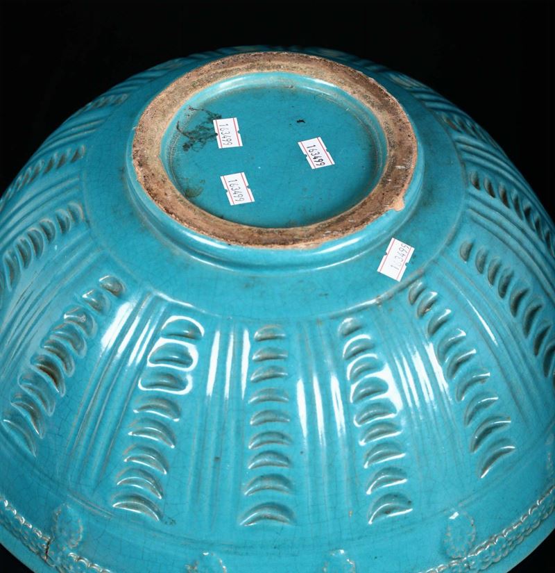 A light blue-ground porcelain bowl with decoration in relief, Perisa, 19th century