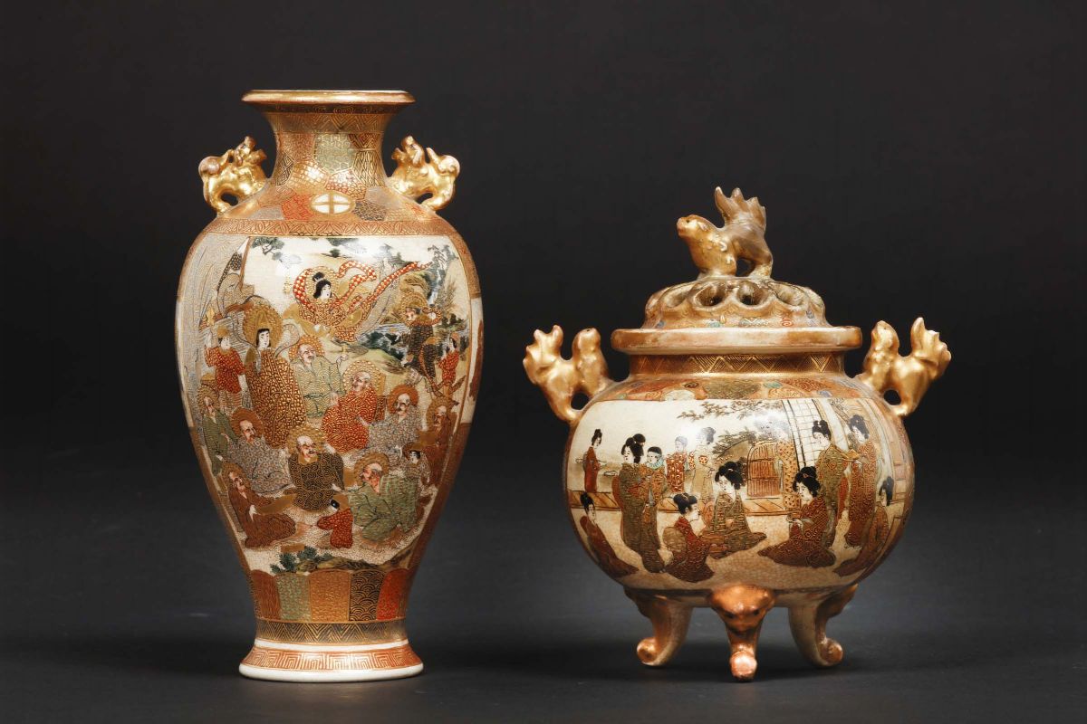 A lot made of Satsuma porcelain vase and censer, Japan, 20th century