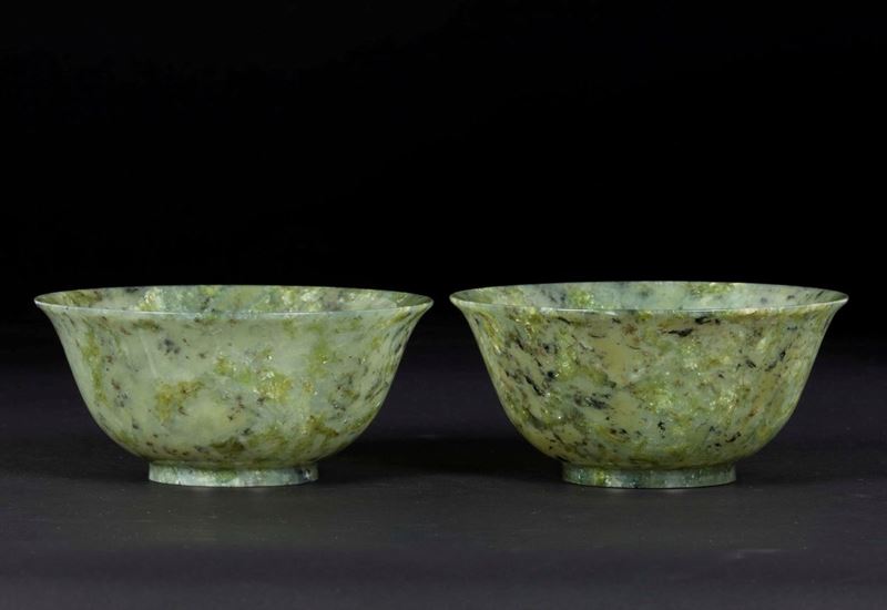 A pair of green jade bowls, China, Qing Dynasty, late 19th century