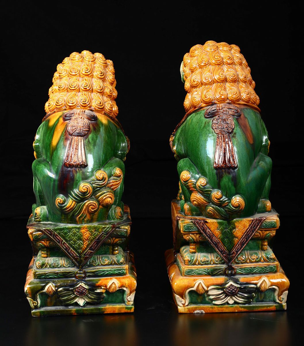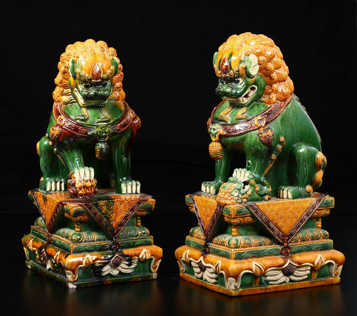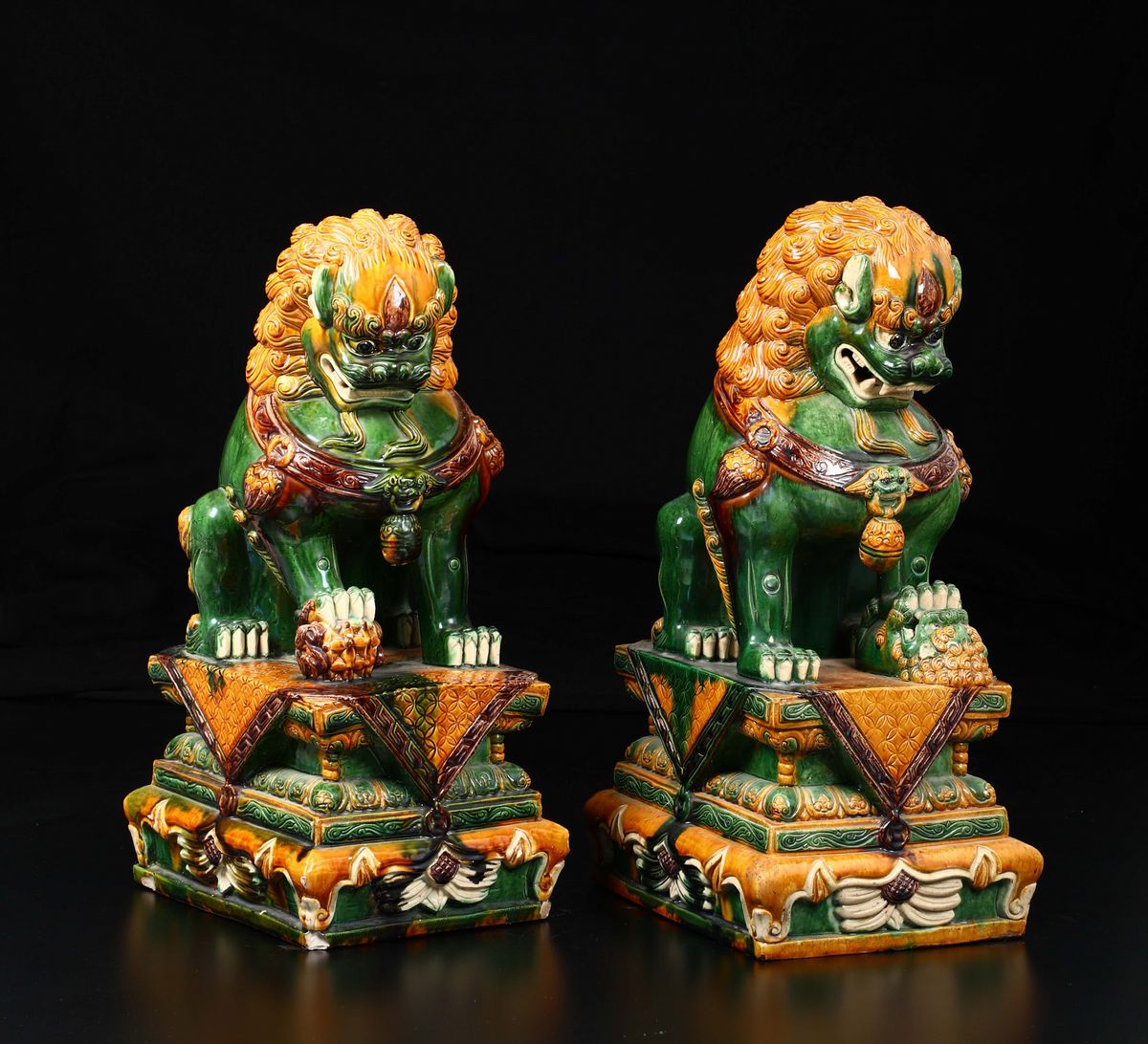 A pair of Sancai porcelain Pho dogs, china, Qing Dynasty, 19th century