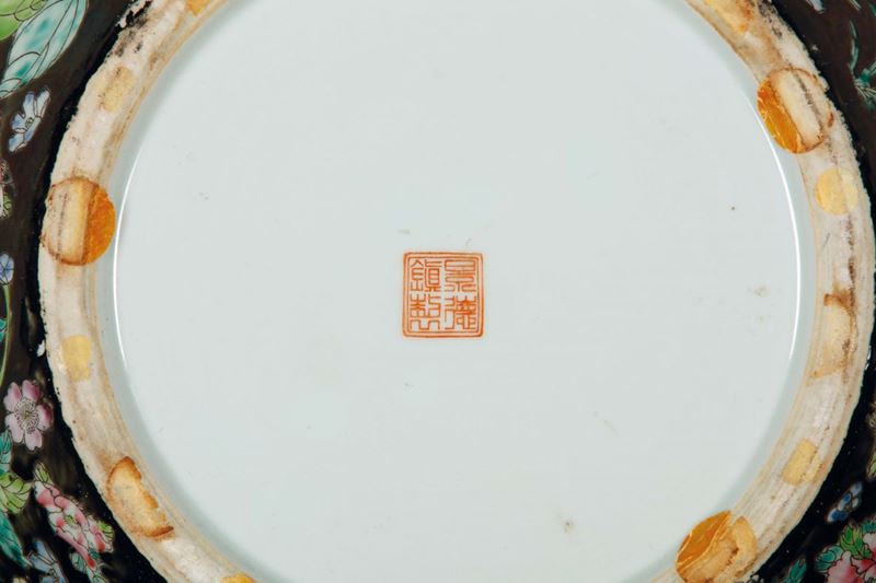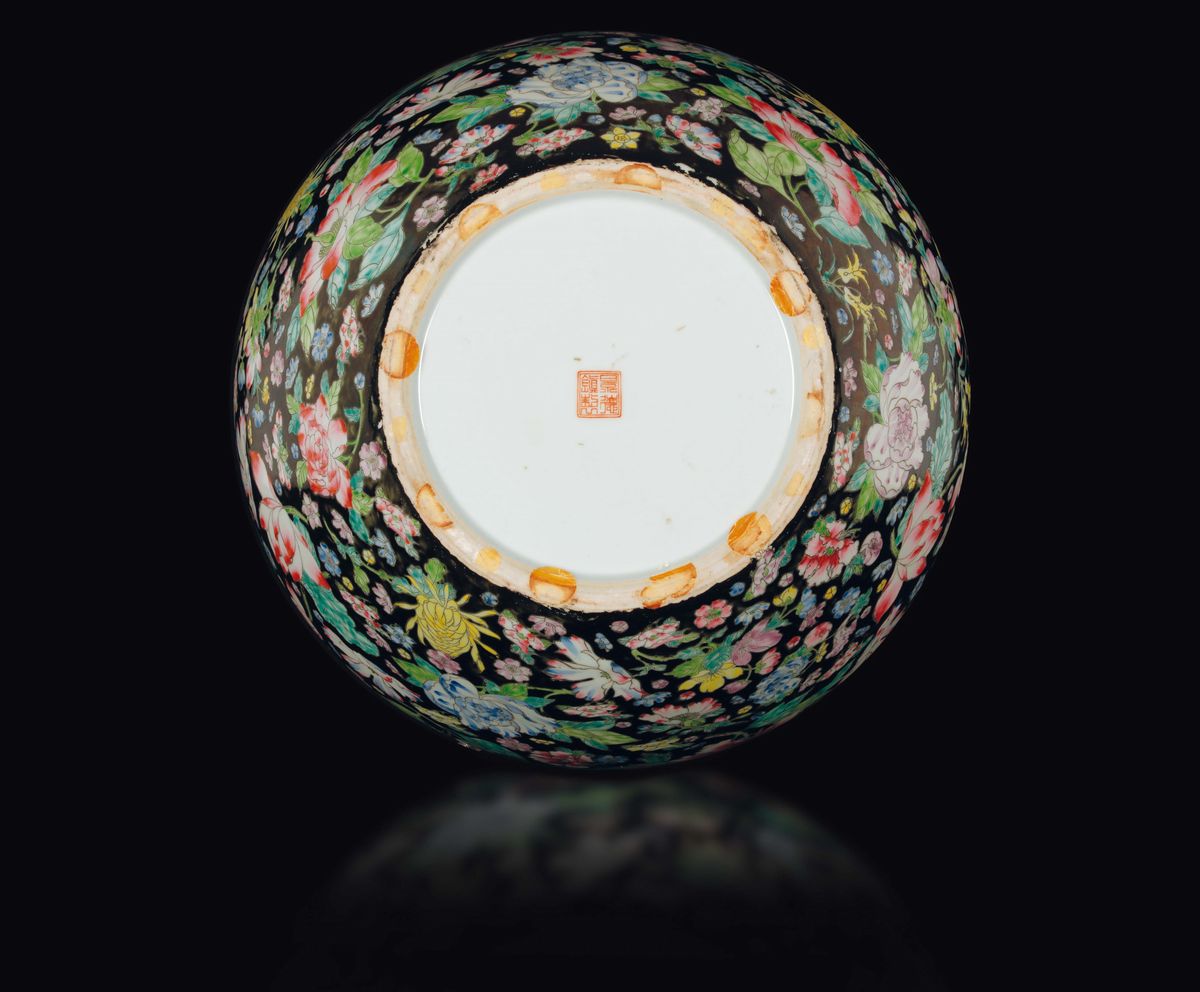 A polychrome enamelled milleflor black-ground vase, China, early 20th century