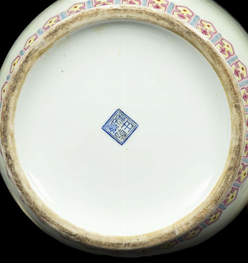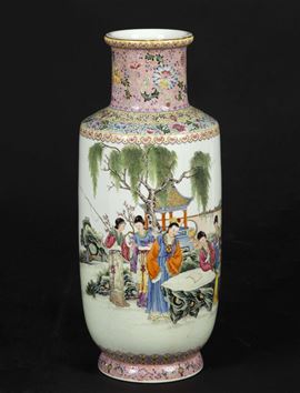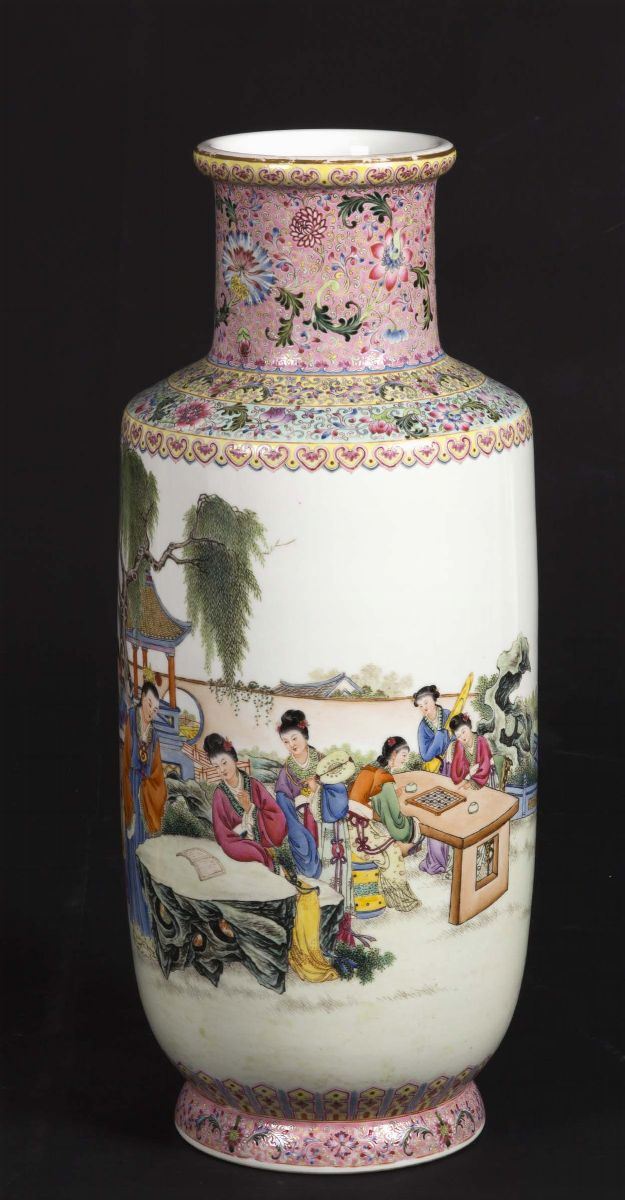 A polychrome enamelled porcelain vase with court life scene and inscriptions, China, early 20th century