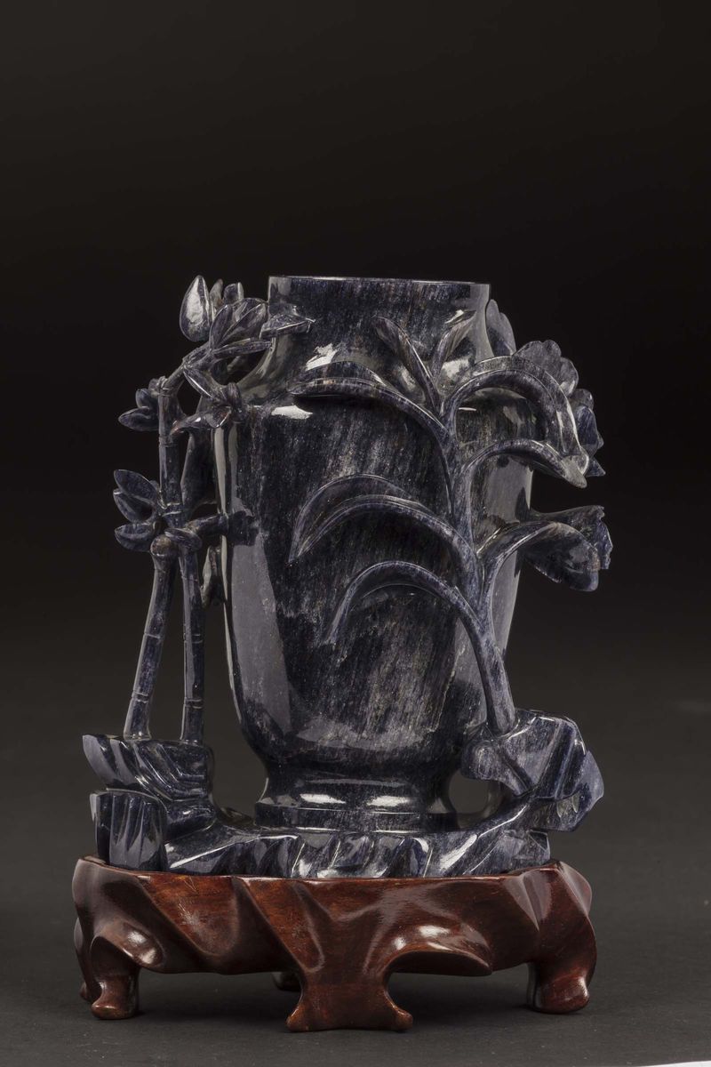 A small lapis lazuli vase with branches in relief, China, 20th century