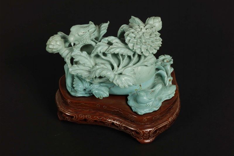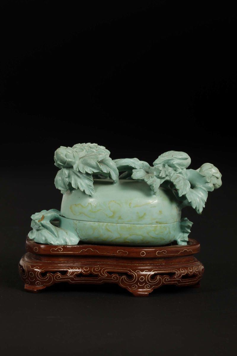 A turquoise small box and a cover with decoration in relief, China, Qing Dynasty, 19th century