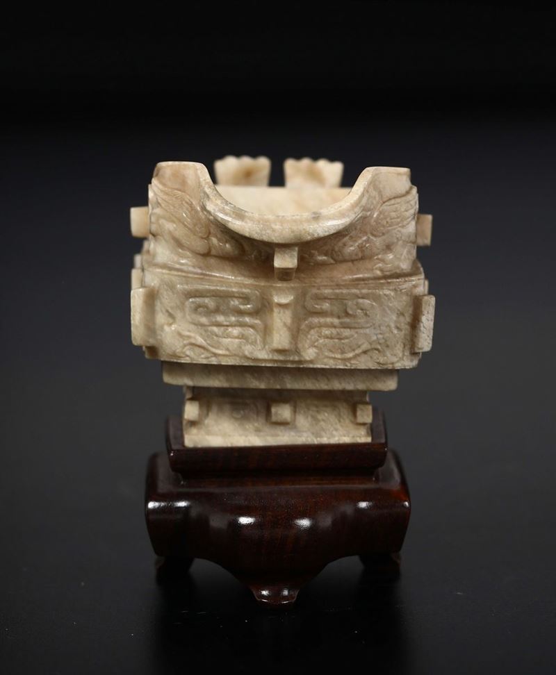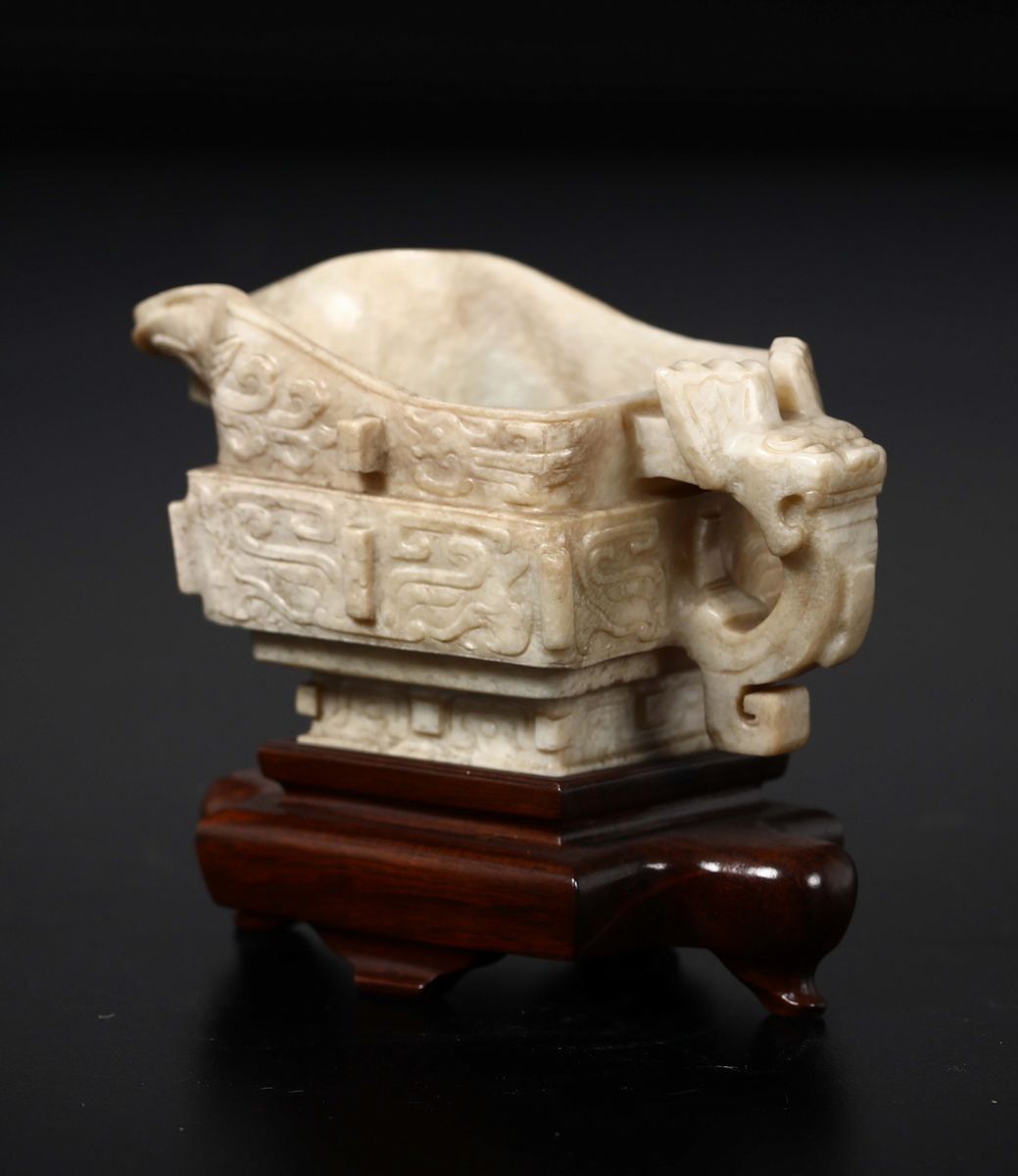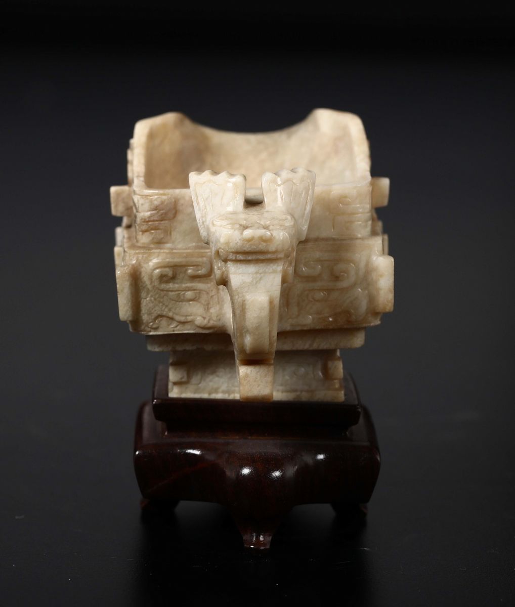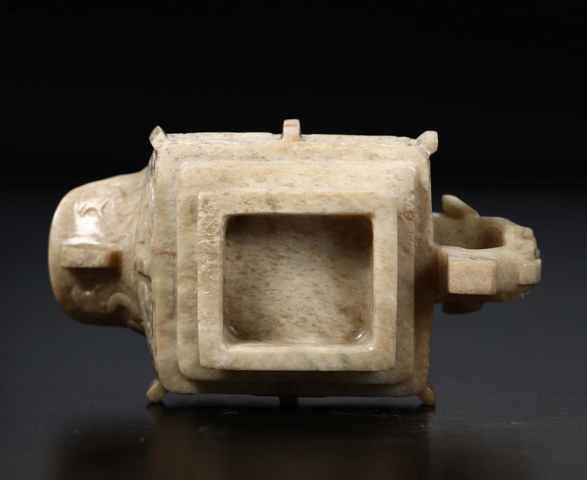 A whie jade pitcher with archaic style decoration, China, Qing Dynasty, 19th century