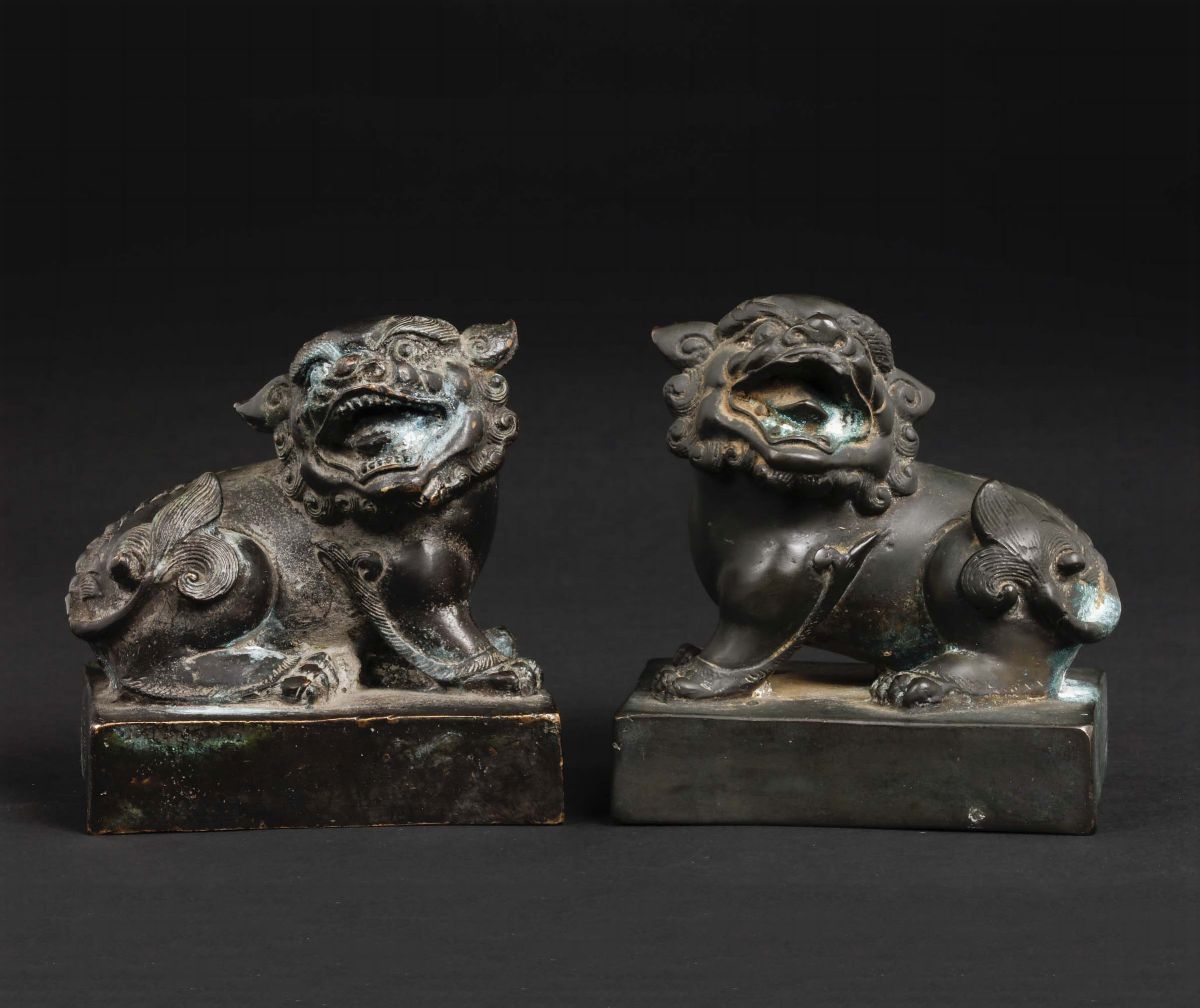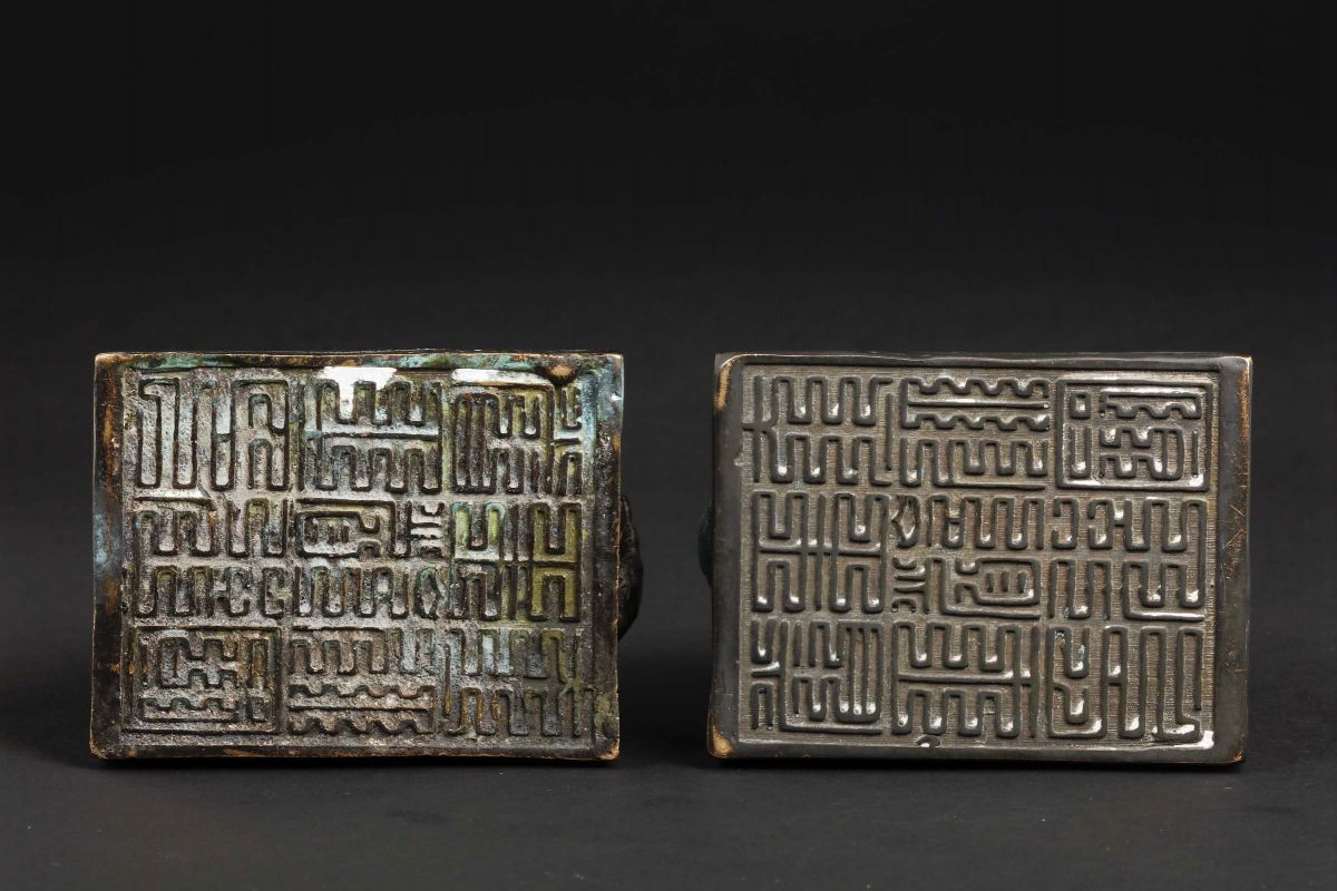 Two bronze seal with Pho dogs, China, 20th century