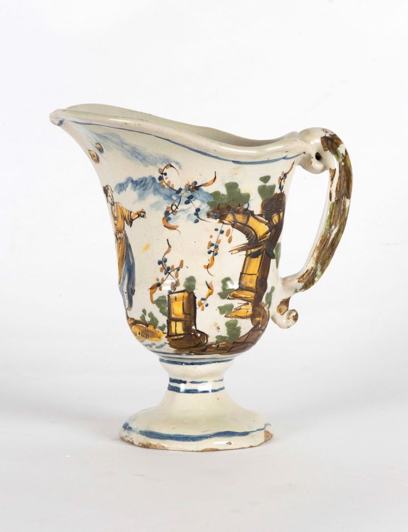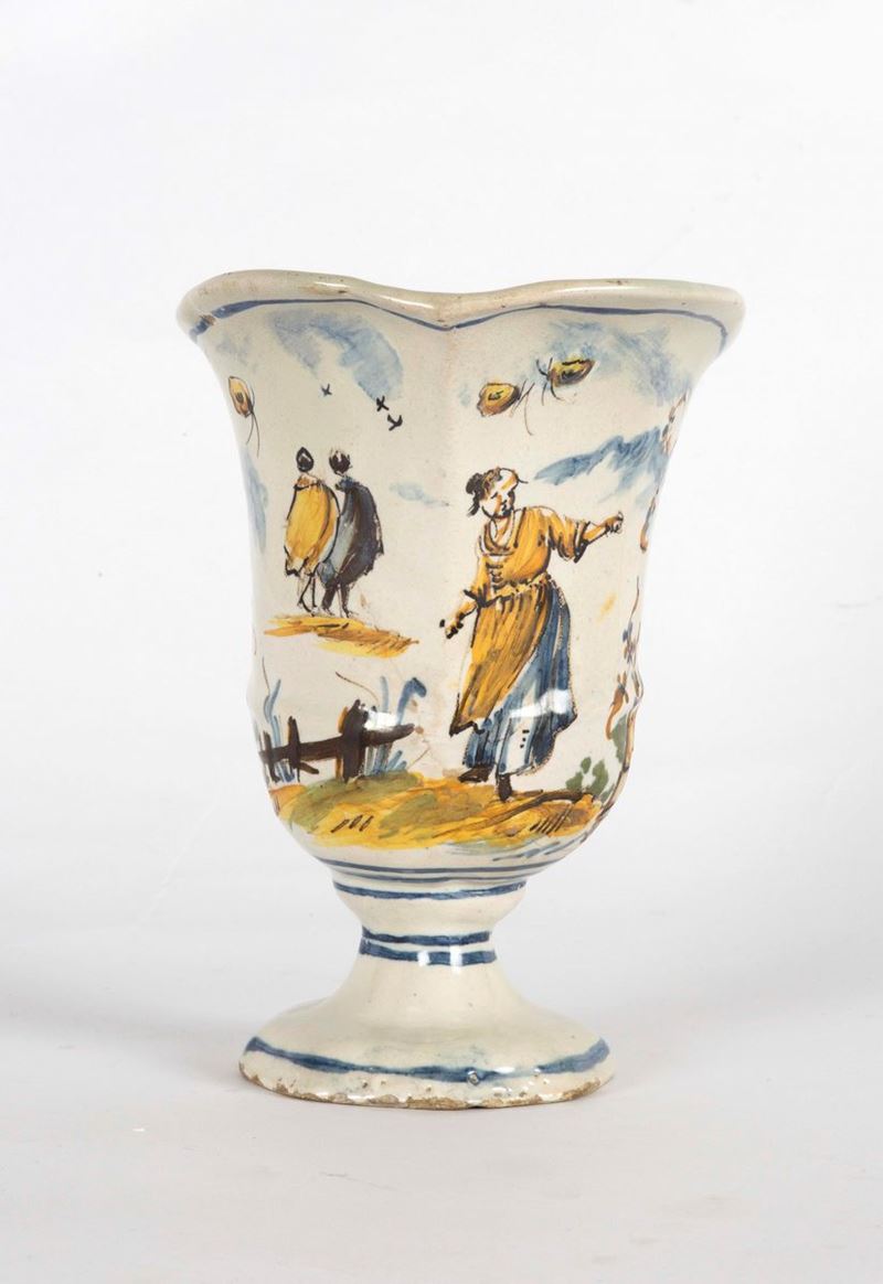 Maiolica policroma a gran fuoco decorazione a figurette e rovine, altezza cm 20 (restauri)