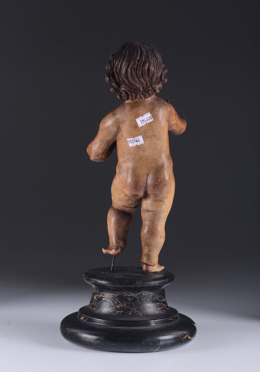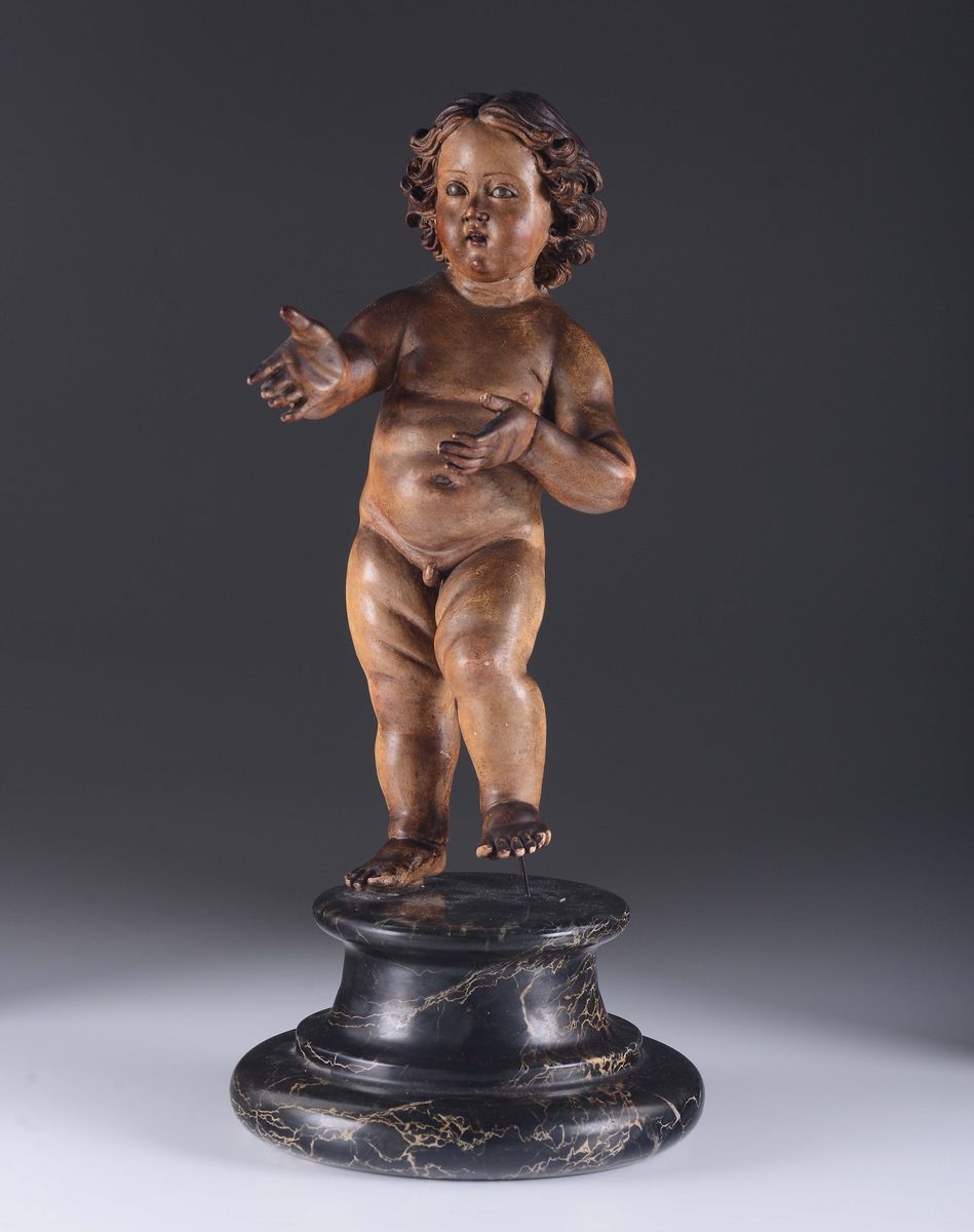 A wooden polychrome sculpture with baby Jesus. 18th-19th century Neapolitan sculptor.