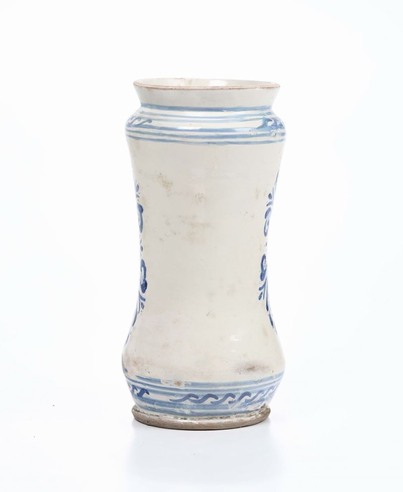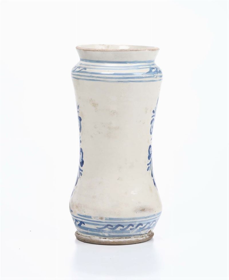 Albarello in maiolica a decoro bianco e blu,Manifattura di Laterza XVIII secolo