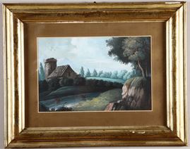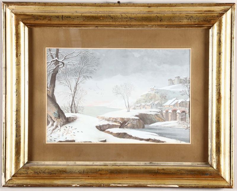 Anonimo del XIX secolo Paesaggio innevato Paesaggio fluviale
