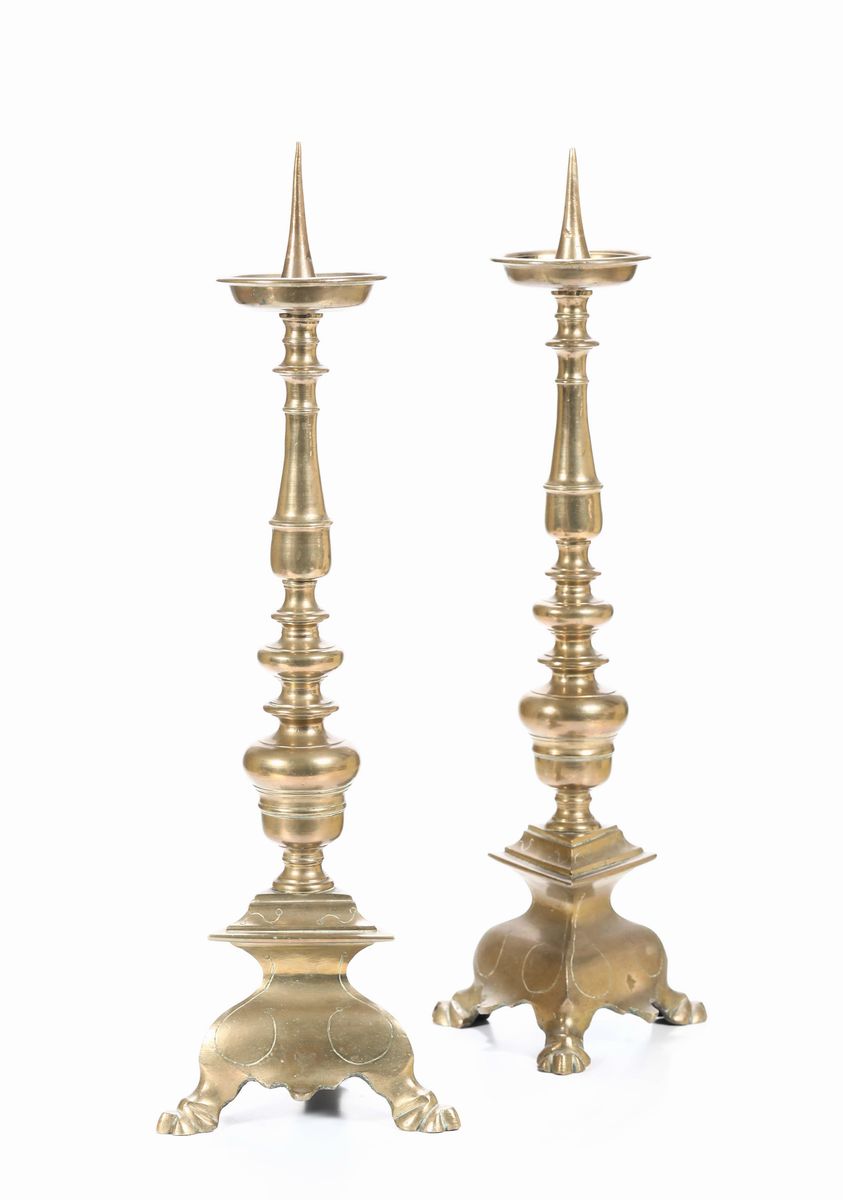 Coppia di candelieri in bronzo dorato, XVIII secolo