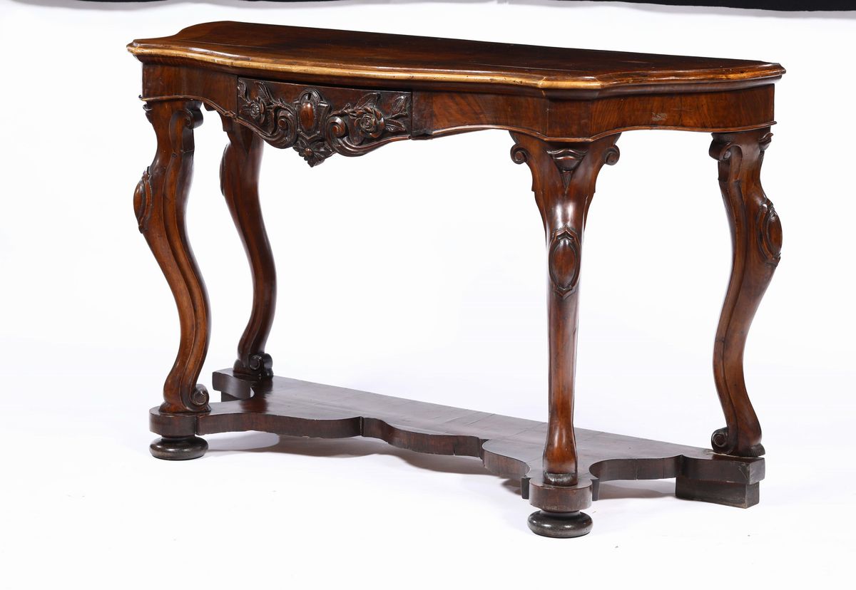 Coppia di consolles Luigi Filippo in legno di noce, XIX secolo