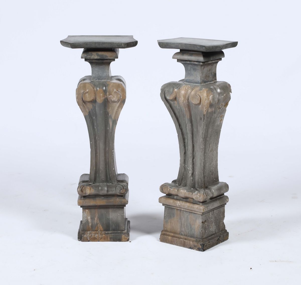 Due basi in marmo grigio Luigi XIV, elementi di una balaustra, XVIII secolo