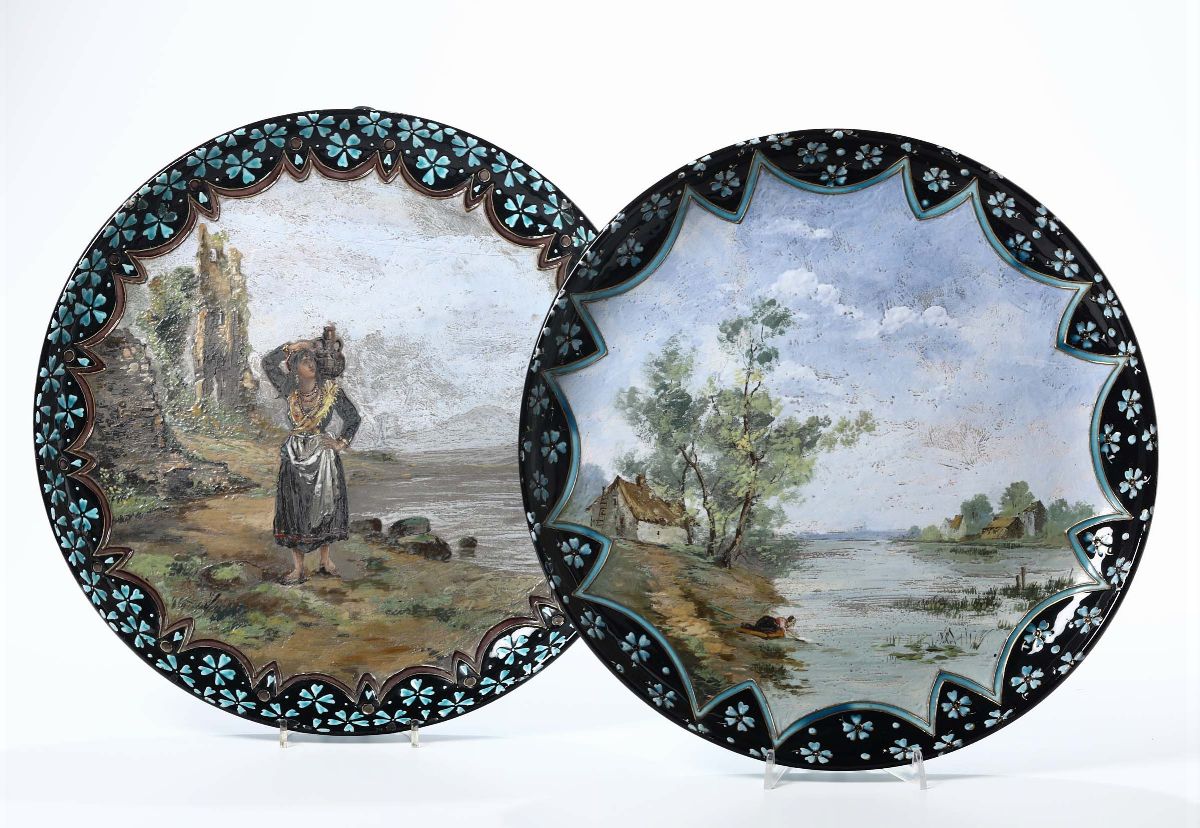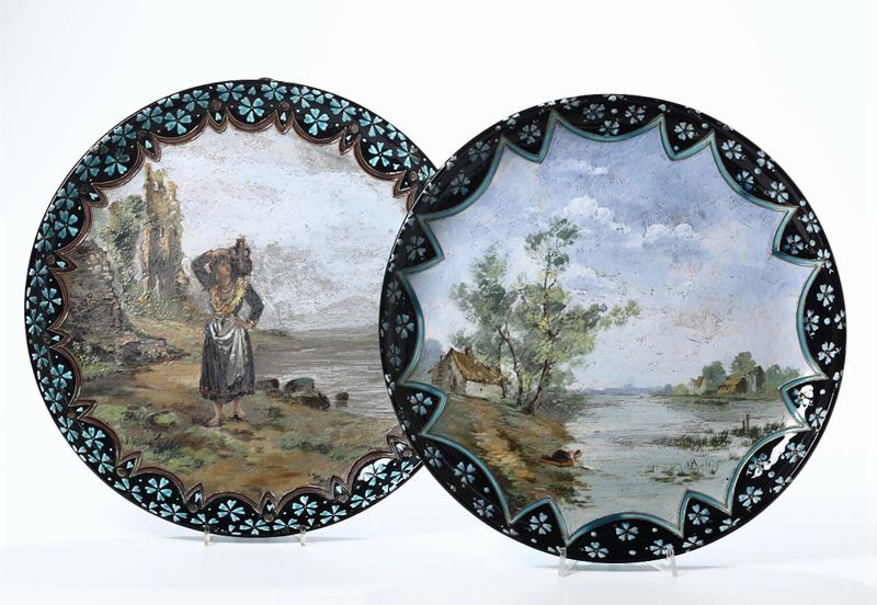 Due piatti da parata con scene campestri