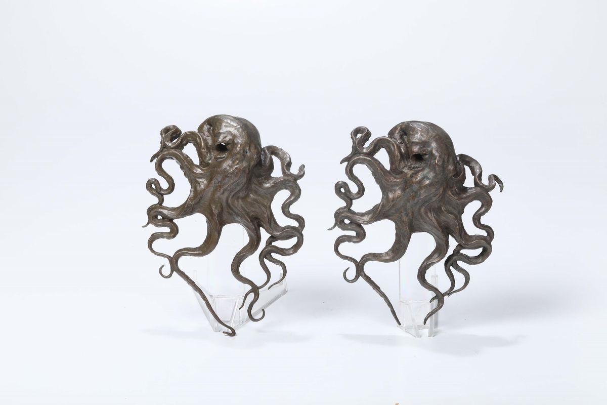Due polpi in bronzo, XX secolo