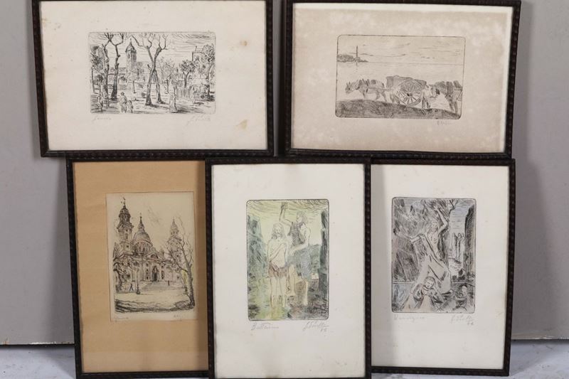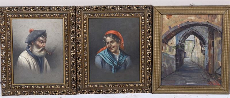 cm 26x20, 32x23, Nel lotto dipinto di Sille Giubilei e due ritratti di popolani