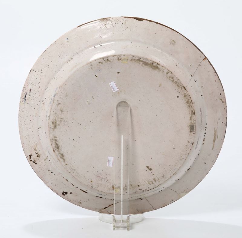 Grande piatto in maiolica decorato in policromia, Puglia XIX secolo