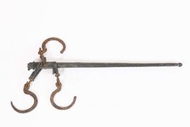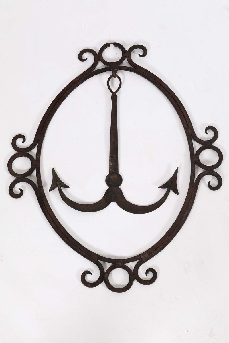 Ferro con tracce di policromia con disegno ovale di ancora al centro, cm 71x37