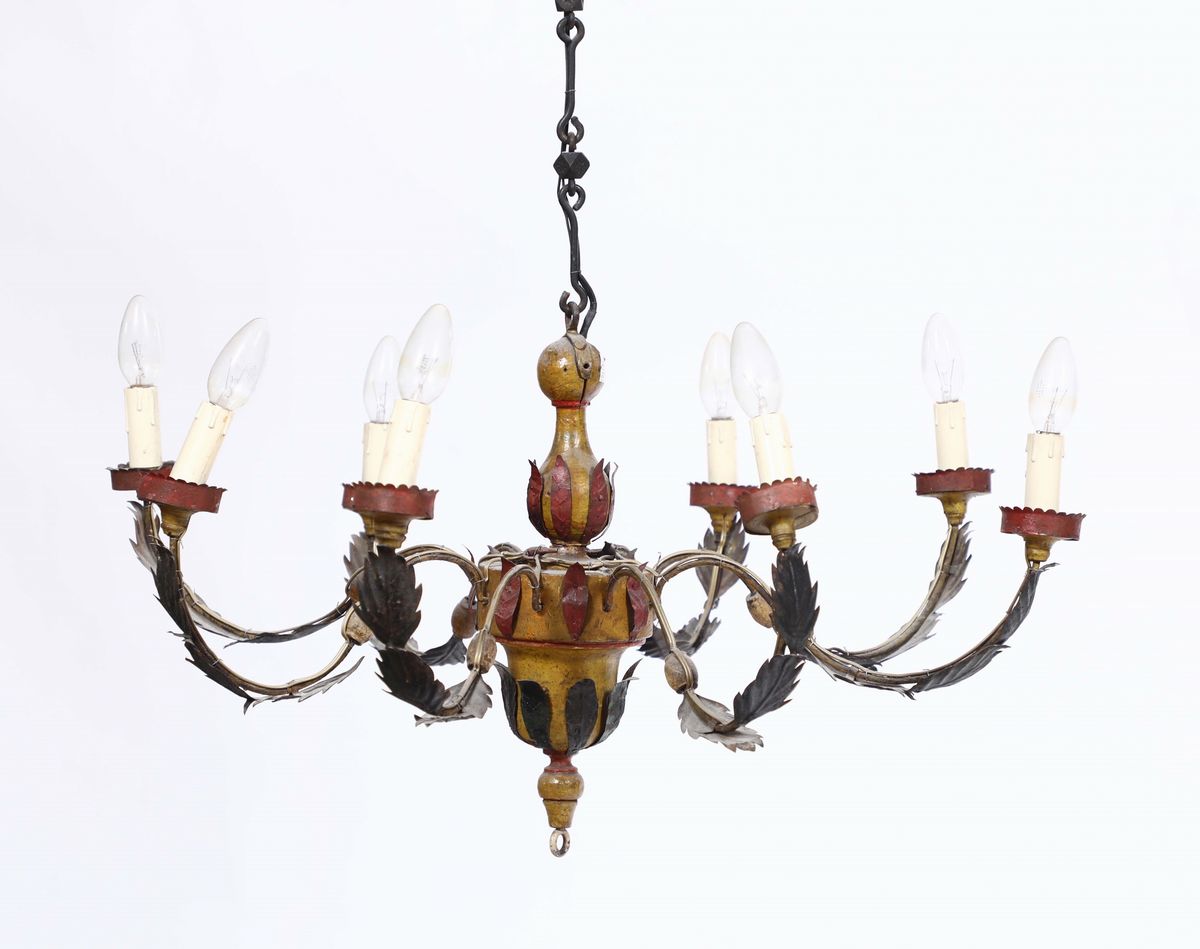 Lampadario a sei luci in legno e metallo dipinto, XIX secolo