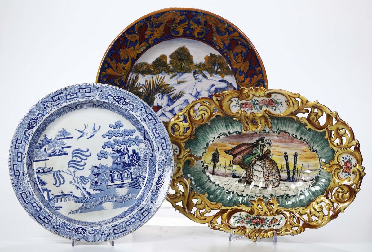 Lotto di tre piatti diversi tra cui un Gualdo Tadino a lustro