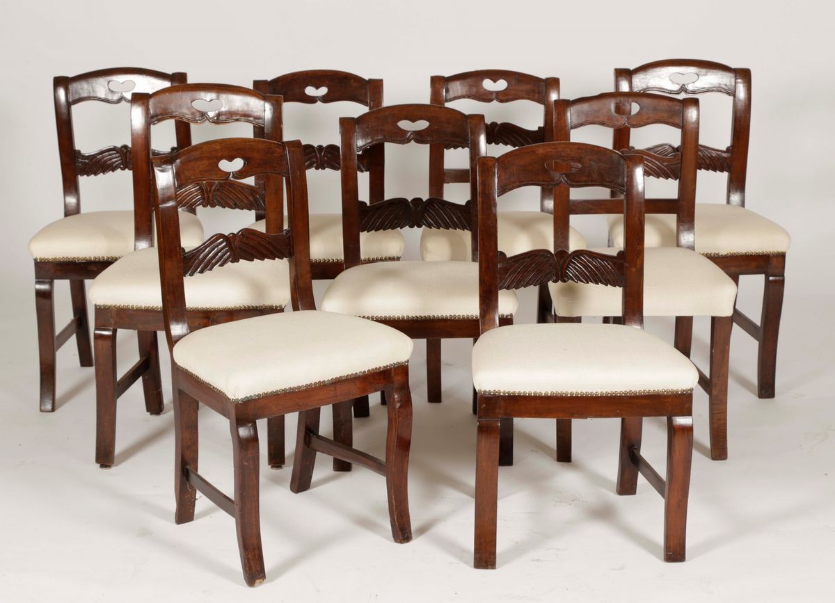 Nove sedie in noce scurito, XX secolo