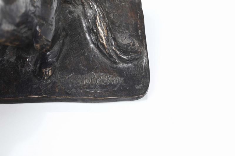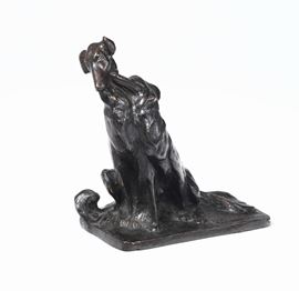 Scultura in bronzo raffigurante cani, firma incisa alla base, cm 20,5x11x20