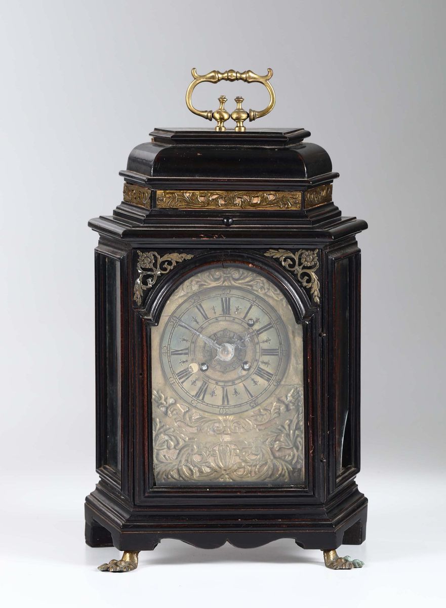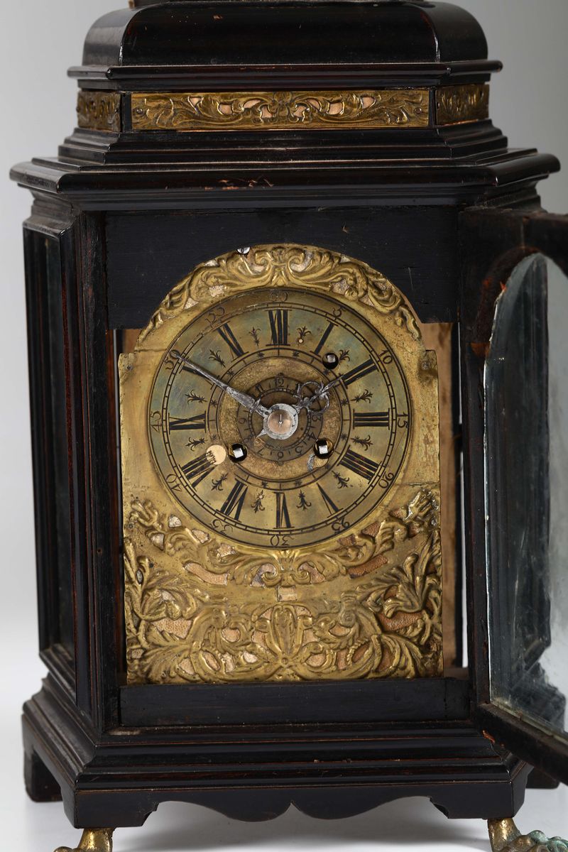 Pendola da tavolo in legno ebanizzato, XVIII secolo