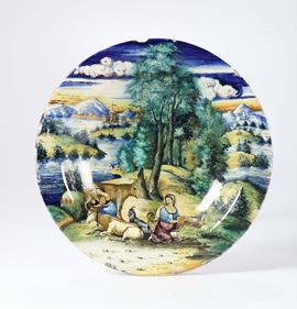 Piatto in maiolica con scena pastorale, Cantagalli, Firenze XX secolo