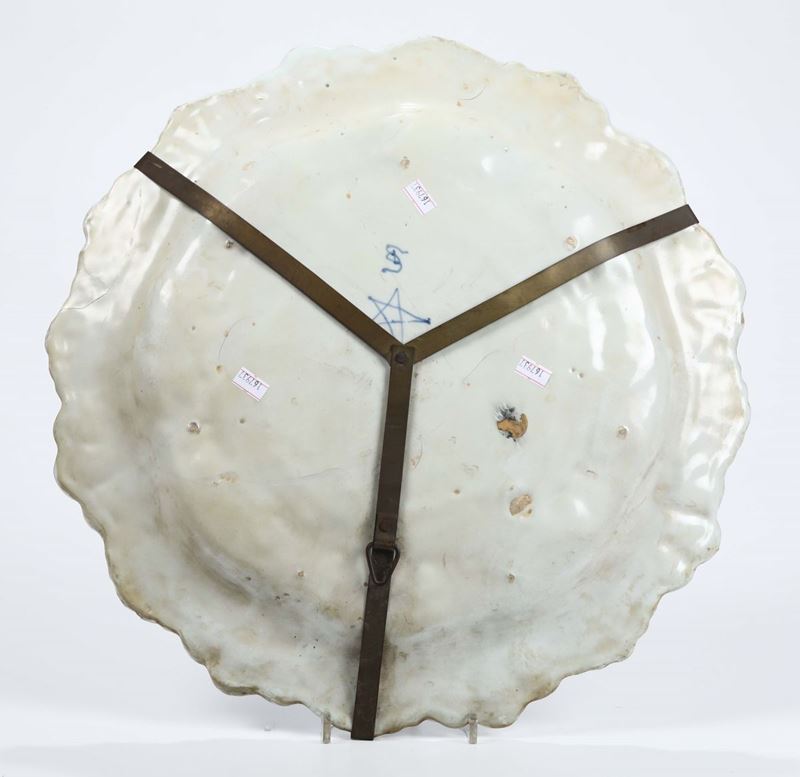 decoro con paesaggio e figure al centro del cavetto, diametro cm 45 (difetti, restauri)
