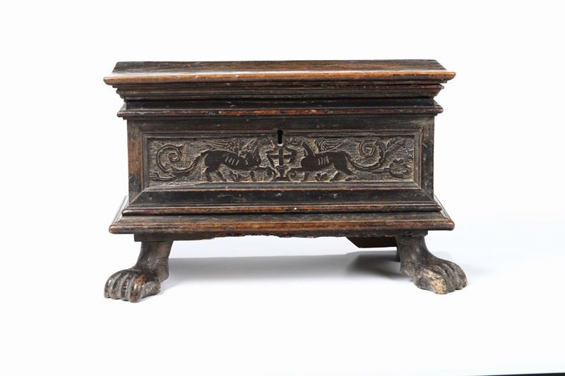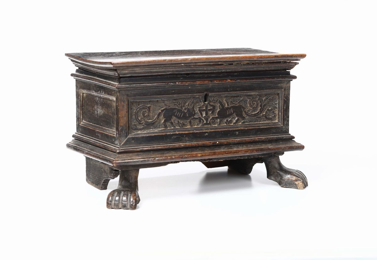Portastendardo in noce massello intagliato, Genova metà XVI secolo