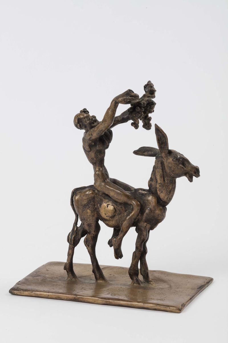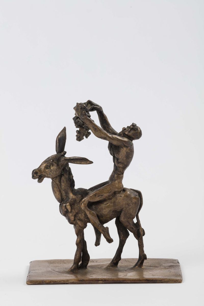 Satiro su asinello in bronzo, XX secolo