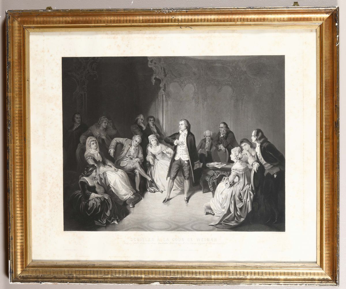 Stampa raffigurante Schiller alla corte di Weimar, XIX secolo