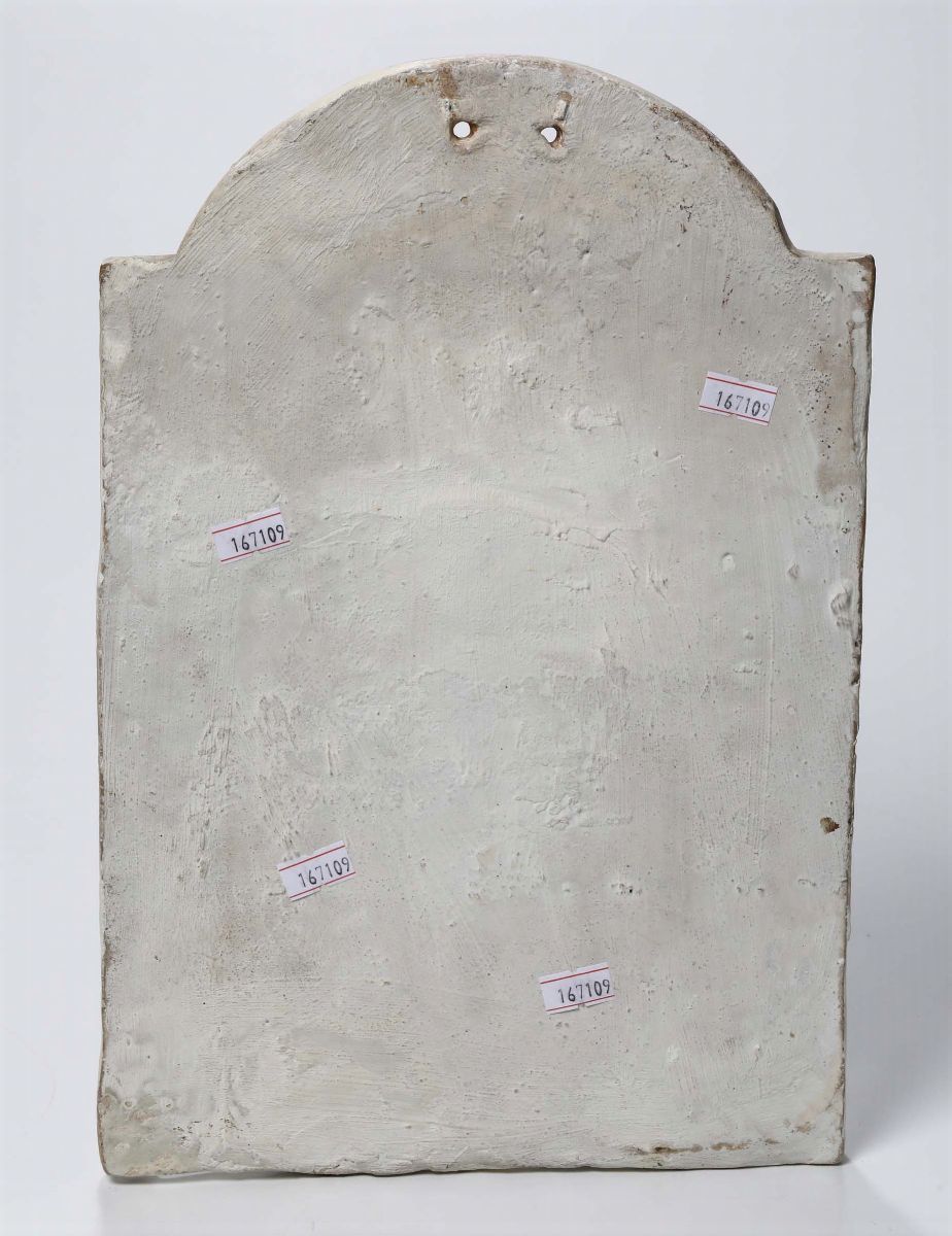 Targa devozionale raffigurante Beata Vergine del Buon Consiglio. Manifattura Faentina, fine XIX secolo