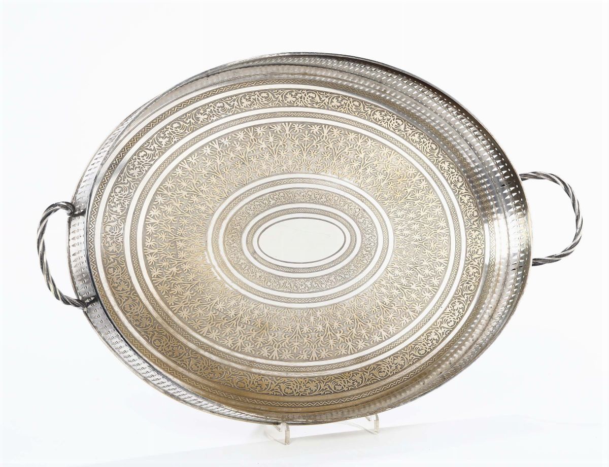 Vassoio ovale in metallo argentato con manici, Russia XX secolo